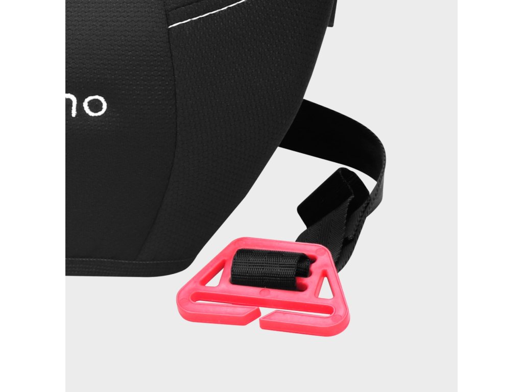 - Červená vodicí lišta pásu – zajišťuje správné vedení pásu přes rameno a klíční kost dítěte.