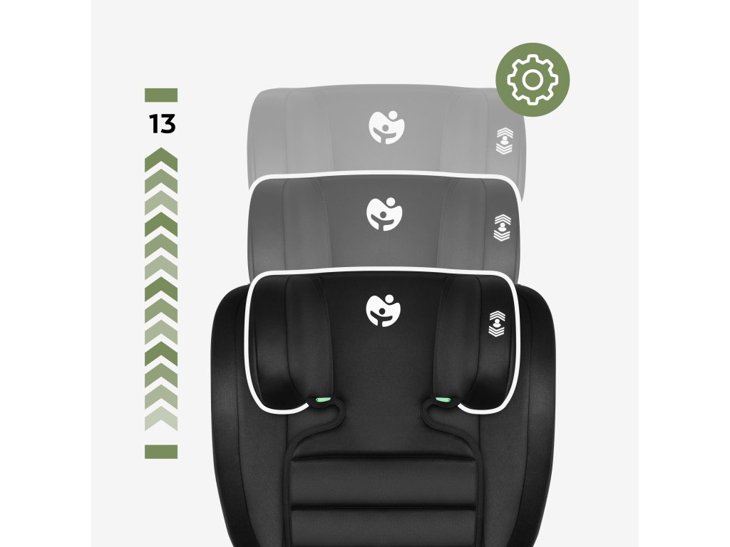 - 13stupňová regulace opěrky hlavy umožňuje přesné nastavení podle výšky dítěte,
