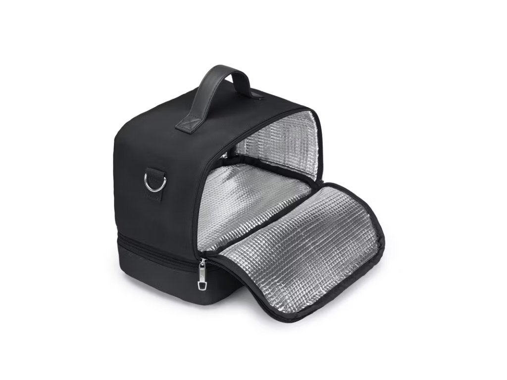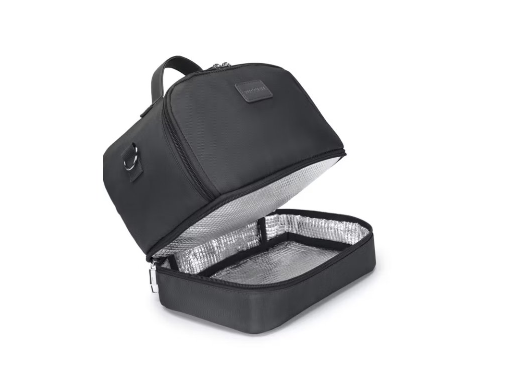 - Dvě přihrádky na zip – snadná organizace: větší na hlavní jídla, menší na svačiny a příbory.