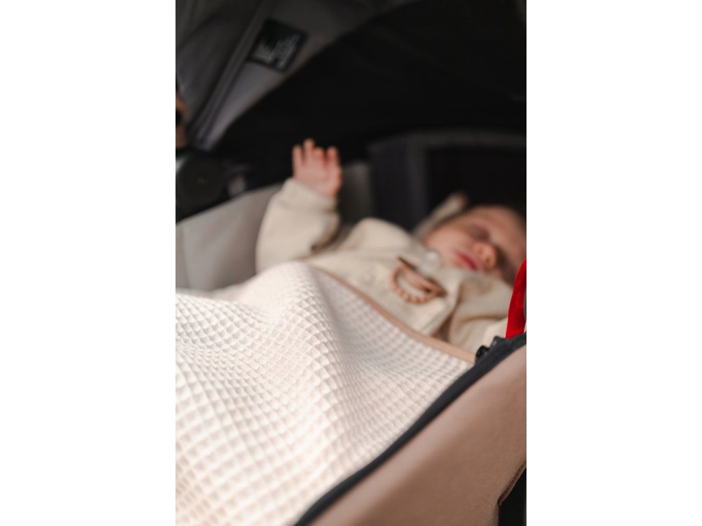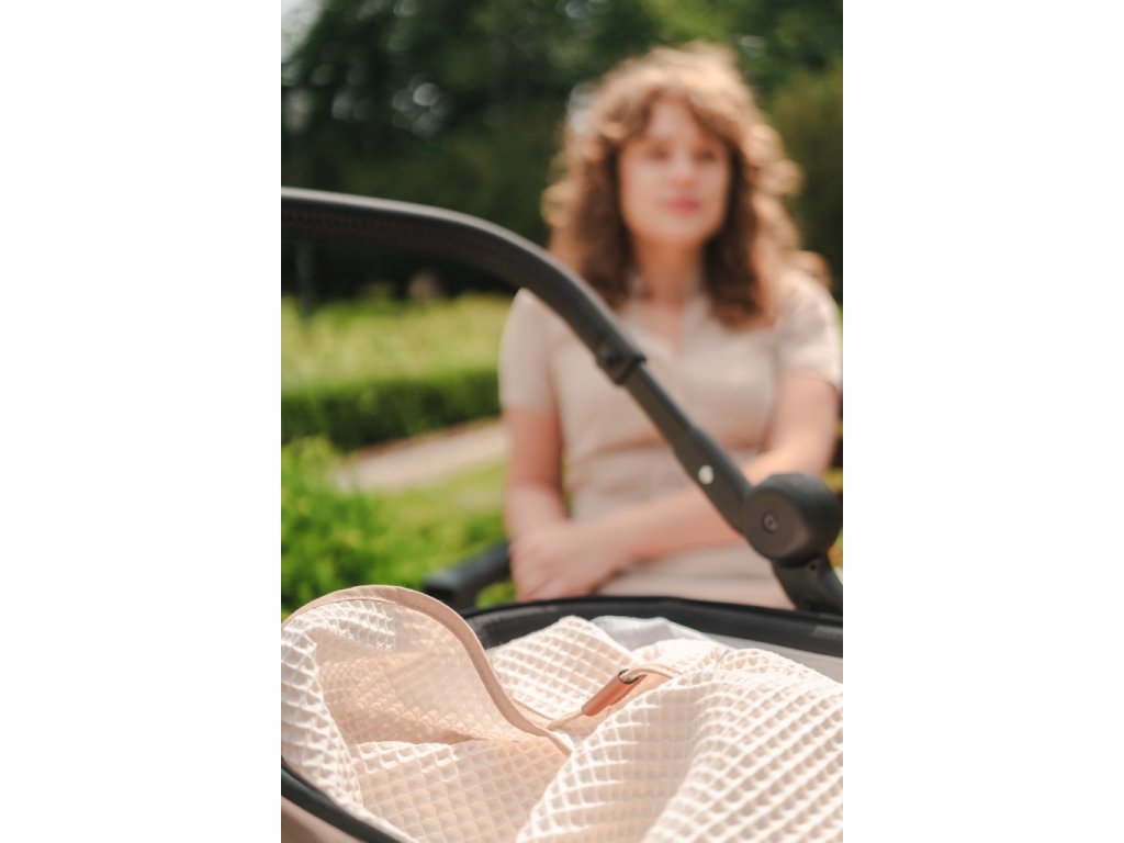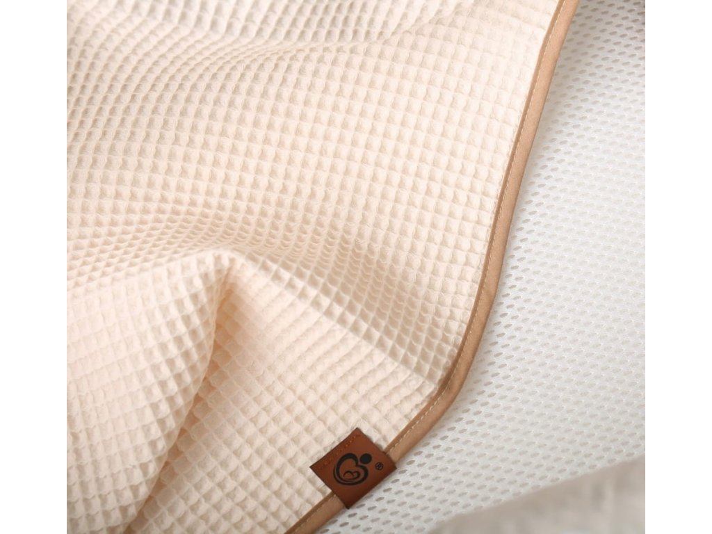 Trojrozměrná vaflová struktura vytváří přirozený vzduchový polštář a nepřiléhá přímo k tělu dítěte. Pomáhá udržovat optimální teplotu – chrání před prochladnutím i přehřátím.