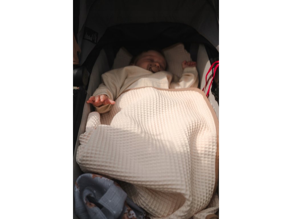 Deka je vyrobena ze 100% přírodní bavlny, bez jakýchkoliv umělých příměsí. Díky tomu je prodyšná, jemná a bezpečná již od prvních dnů života. Vaflová struktura dodává dece elegantní vzhled a zároveň zvyšuje komfort při používání.