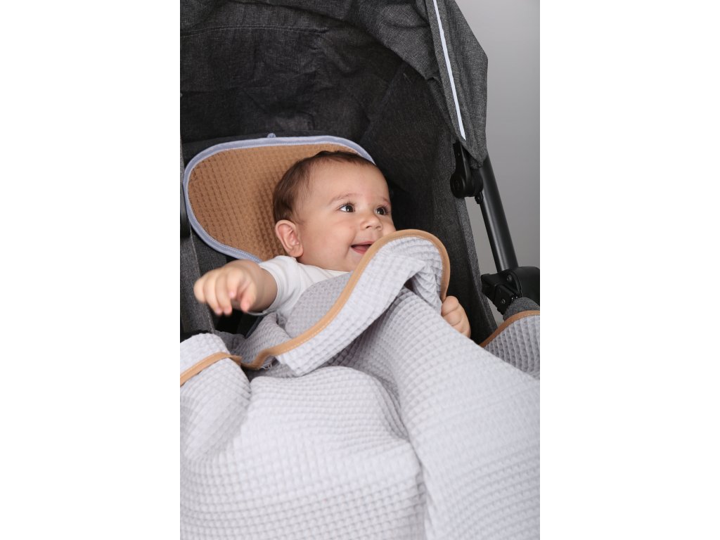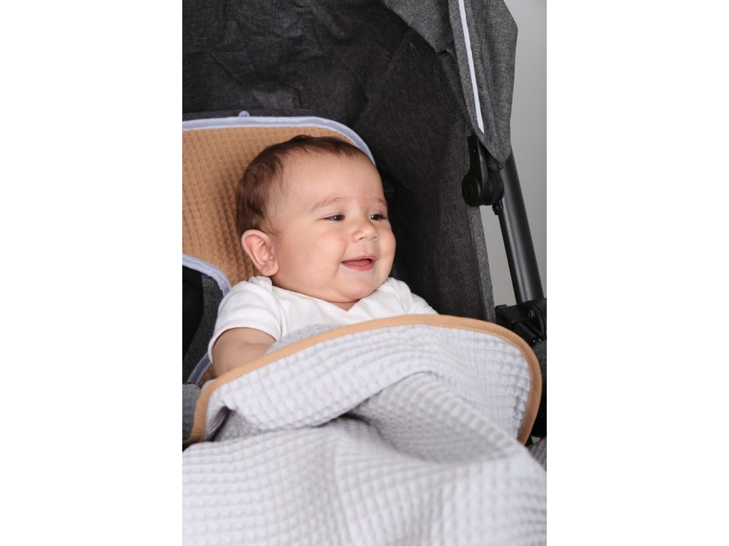 Trojrozměrná vaflová struktura vytváří přirozený vzduchový polštář a nepřiléhá přímo k tělu dítěte. Pomáhá udržovat optimální teplotu – chrání před prochladnutím i přehřátím.