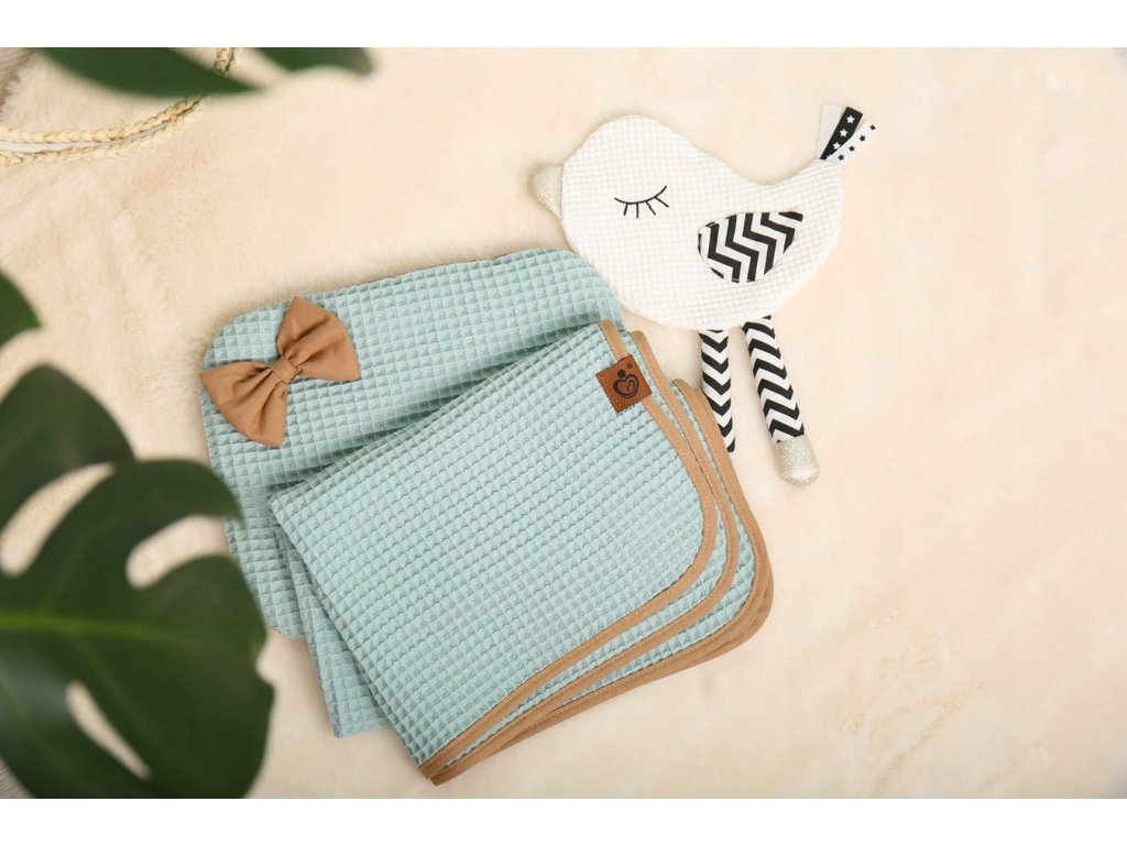 Sada je vyrobena ze 100% přírodní bavlny, bez jakýchkoli umělých příměsí. Díky tomu je mimořádně jemná, prodyšná a šetrná k citlivé pokožce novorozenců a kojenců. Charakteristická vaflová struktura dodává výrobku elegantní vzhled a zároveň zvyšuje komfort při každodenním používání.
