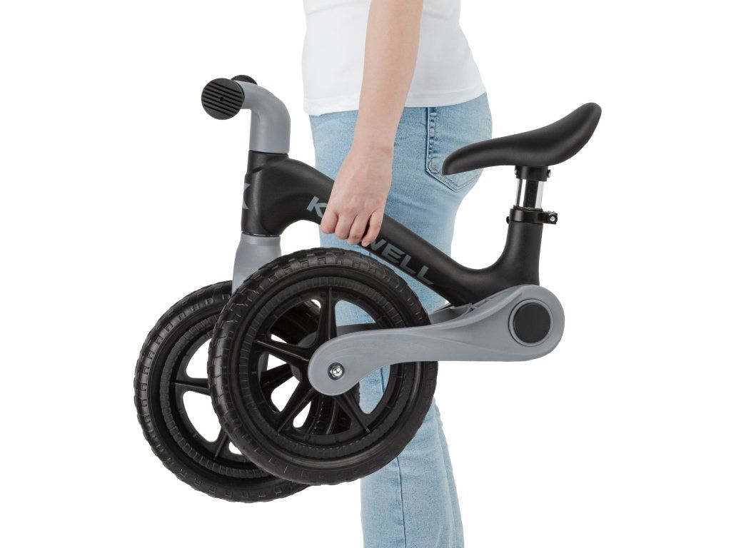 Unikátní mechanismus umožňuje složit odrážedlo jediným stisknutím tlačítka. Kompaktní rozměry po složení usnadňují skladování doma i přepravu v autě, a to i v menším zavazadlovém prostoru. Praktické řešení pro aktivní rodiny na cestách.