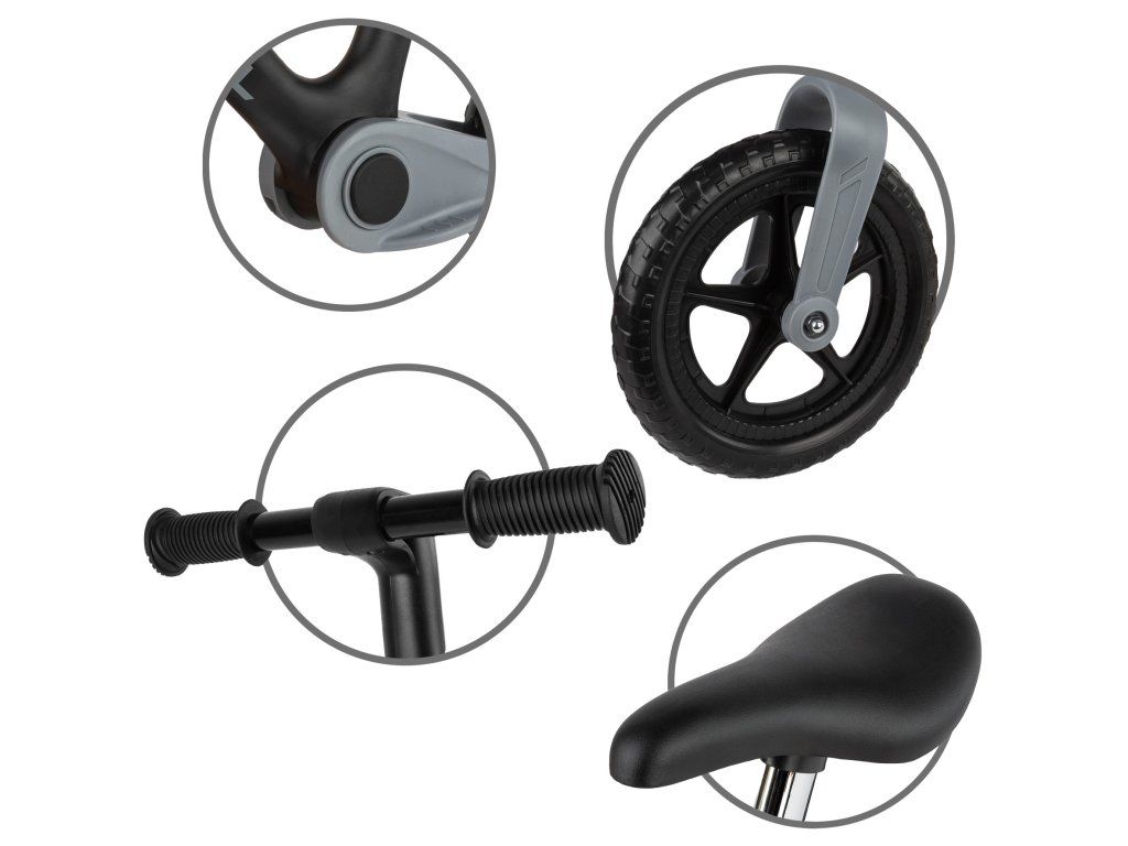 Měkké, protiskluzové rukojeti zajišťují pevný úchop a plnou kontrolu nad odrážedlem. Ergonomické sedlo s měkkým polstrováním poskytuje komfort i při delších projížďkách.