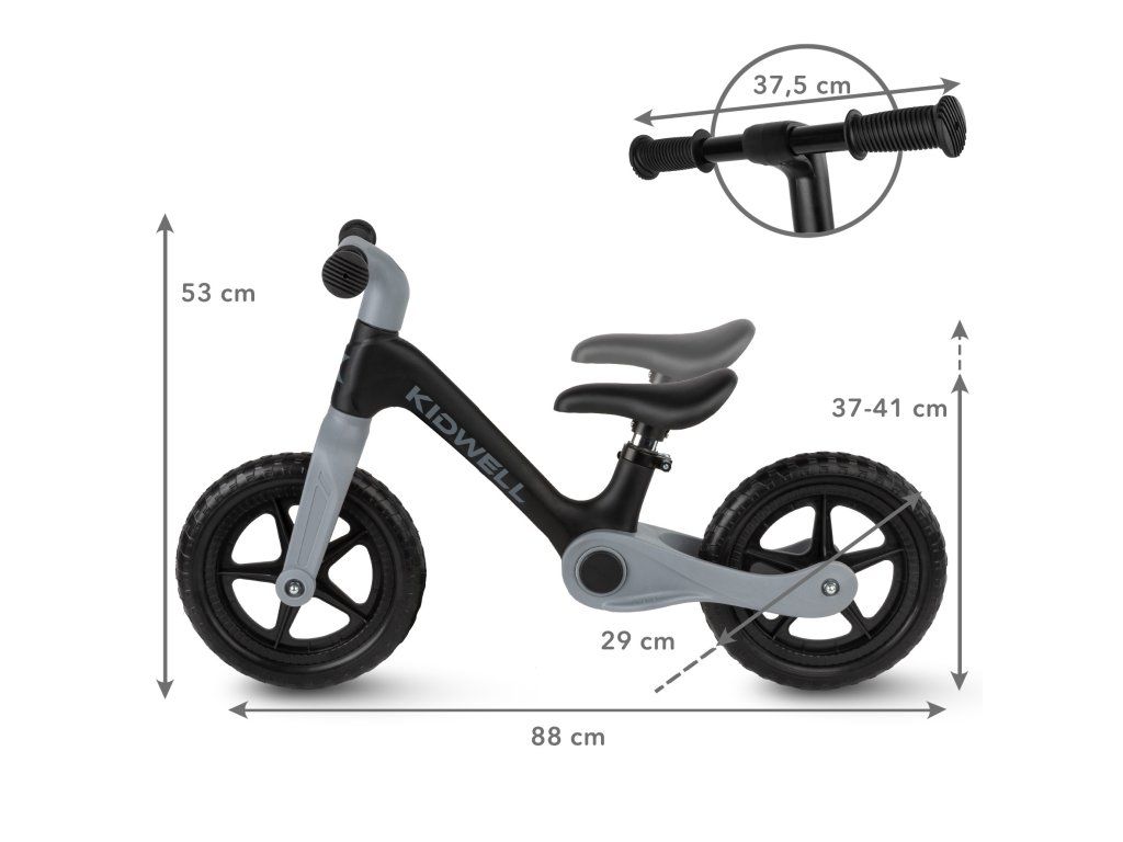 Výška sedla je nastavitelná v rozmezí 37–41 cm, což umožňuje přizpůsobení podle růstu dítěte. Díky tomu odrážedlo vydrží několik sezón a zajistí správnou ergonomii při jízdě.