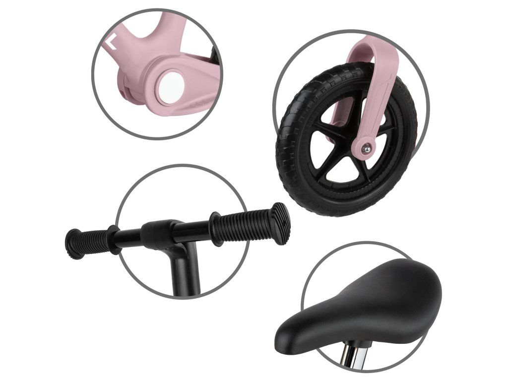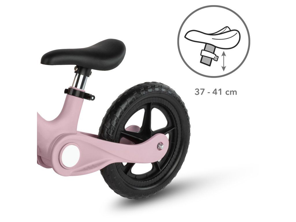 Výška sedla je nastavitelná v rozmezí 37–41 cm, což umožňuje přizpůsobení podle růstu dítěte. Díky tomu odrážedlo vydrží několik sezón a zajistí správnou ergonomii při jízdě.