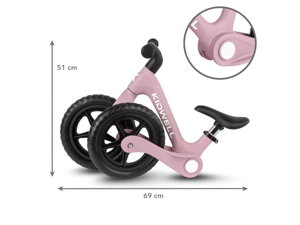 Unikátní mechanismus umožňuje složit odrážedlo jediným stisknutím tlačítka. Kompaktní rozměry po složení usnadňují skladování doma i přepravu v autě, a to i v menším zavazadlovém prostoru. Praktické řešení pro aktivní rodiny na cestách.