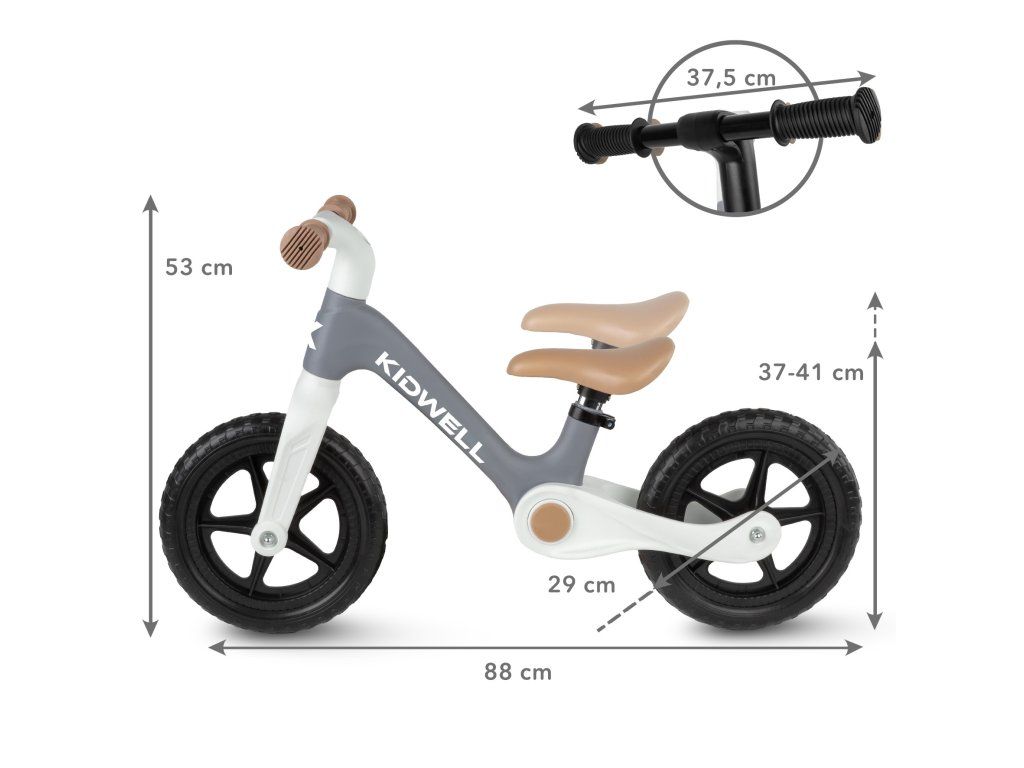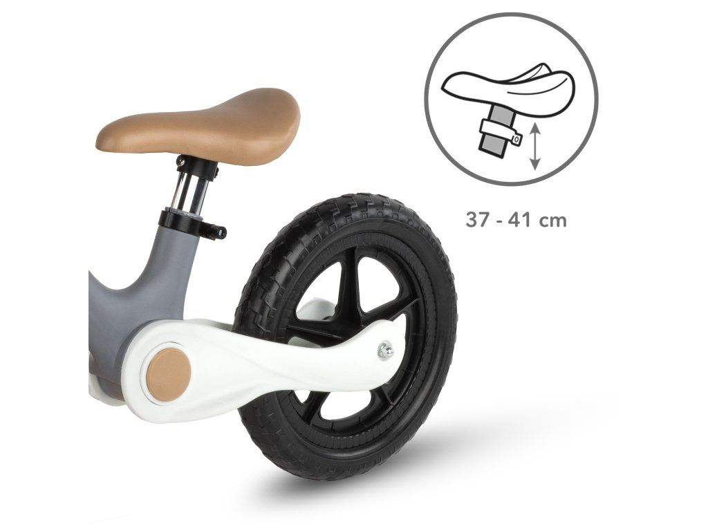 Výška sedla je nastavitelná v rozmezí 37–41 cm, což umožňuje přizpůsobení podle růstu dítěte. Díky tomu odrážedlo vydrží několik sezón a zajistí správnou ergonomii při jízdě.