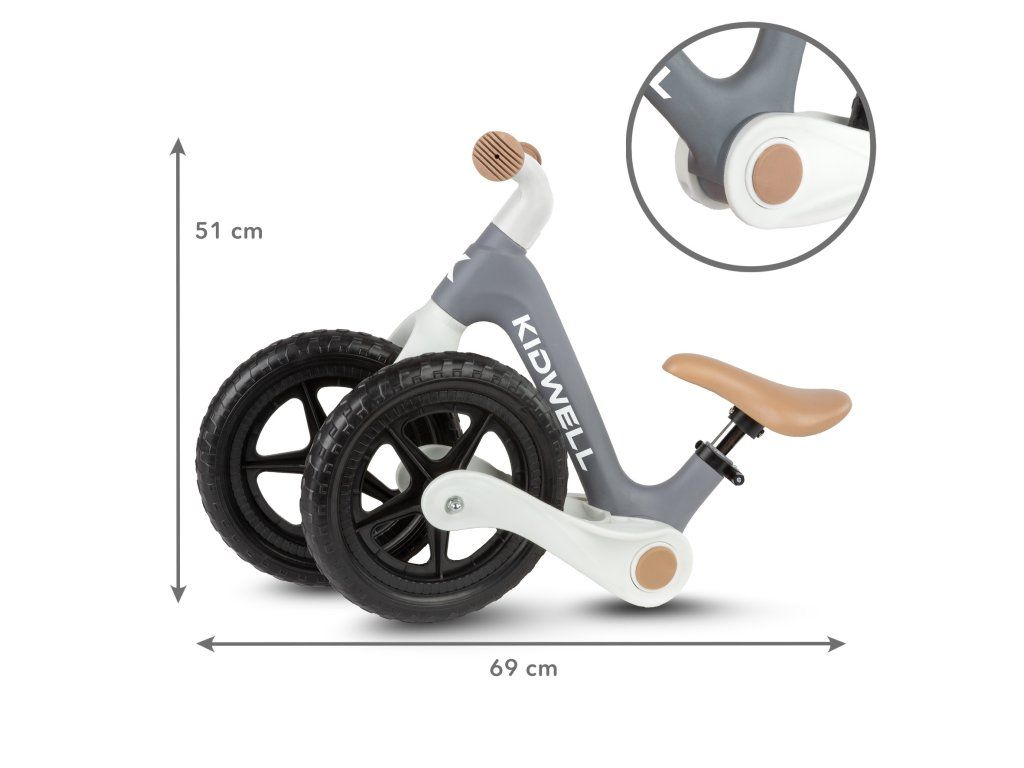 Unikátní mechanismus umožňuje složit odrážedlo jediným stisknutím tlačítka. Kompaktní rozměry po složení usnadňují skladování doma i přepravu v autě, a to i v menším zavazadlovém prostoru. Praktické řešení pro aktivní rodiny na cestách.