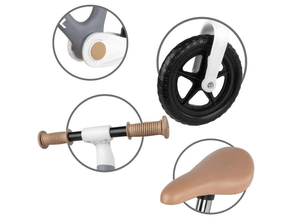 Měkké, protiskluzové rukojeti zajišťují pevný úchop a plnou kontrolu nad odrážedlem. Ergonomické sedlo s měkkým polstrováním poskytuje komfort i při delších projížďkách.