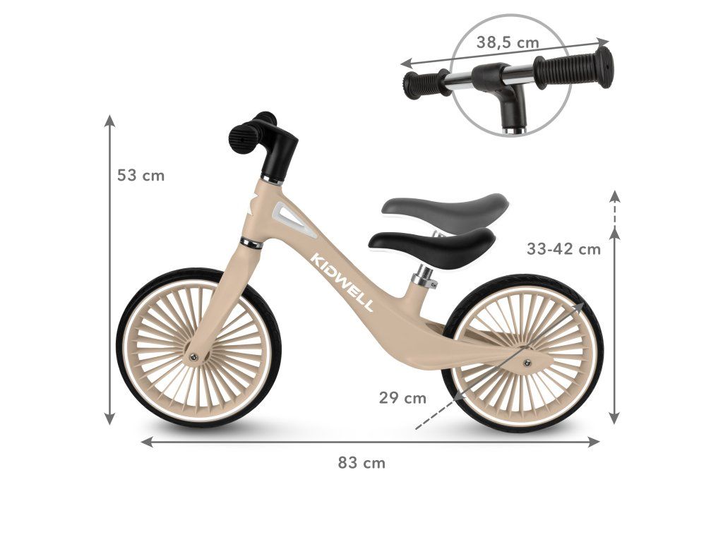 Ergonomicky tvarované sedlo s měkkým polstrováním poskytuje pohodlí i při delších jízdách. Díky nastavitelné výšce roste odrážedlo spolu s dítětem a přizpůsobuje se jeho potřebám.