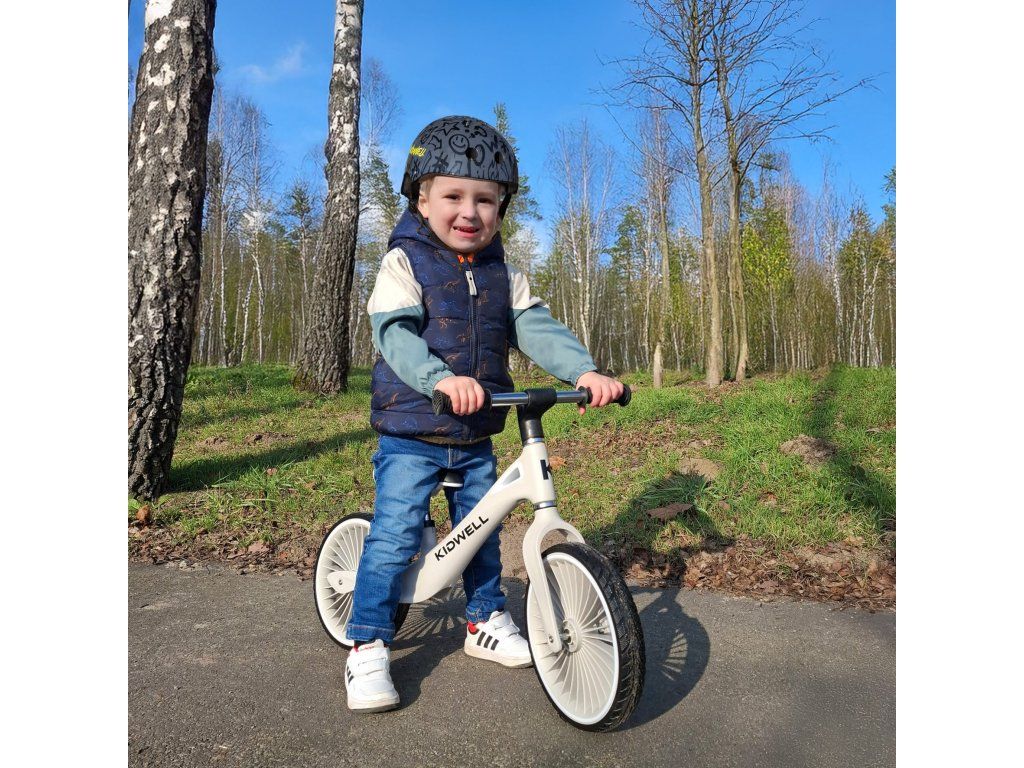 Plně otočná řídítka jsou navržena s ohledem na bezpečnost dítěte – při pádu se mohou sklopit, čímž pomáhají snížit riziko zranění. Protiskluzové rukojeti zajišťují pevný úchop a lepší kontrolu nad jízdou.