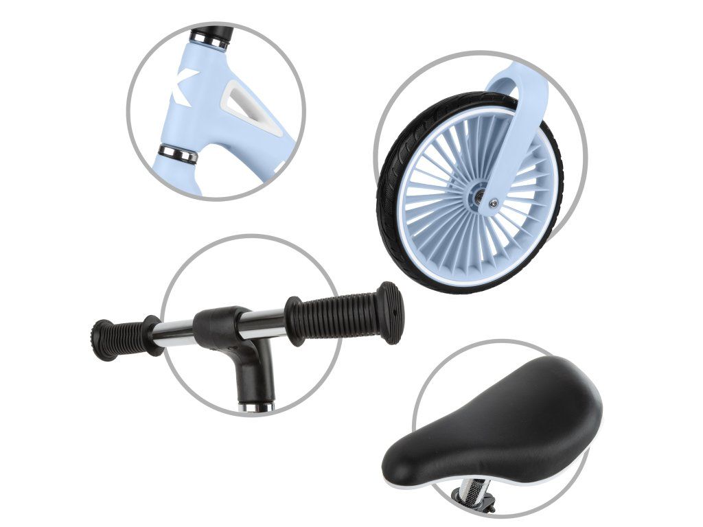 Rám odrážedla je vyroben z kvalitního nylonu, který se vyznačuje vysokou pevností a odolností vůči zatížení. Díky nízké hmotnosti pouhých 3,05 kg se odrážedlo snadno ovládá a zároveň je praktické pro přenášení rodiči. Konstrukce je navržena tak, aby poskytovala maximální komfort při každodenním používání.