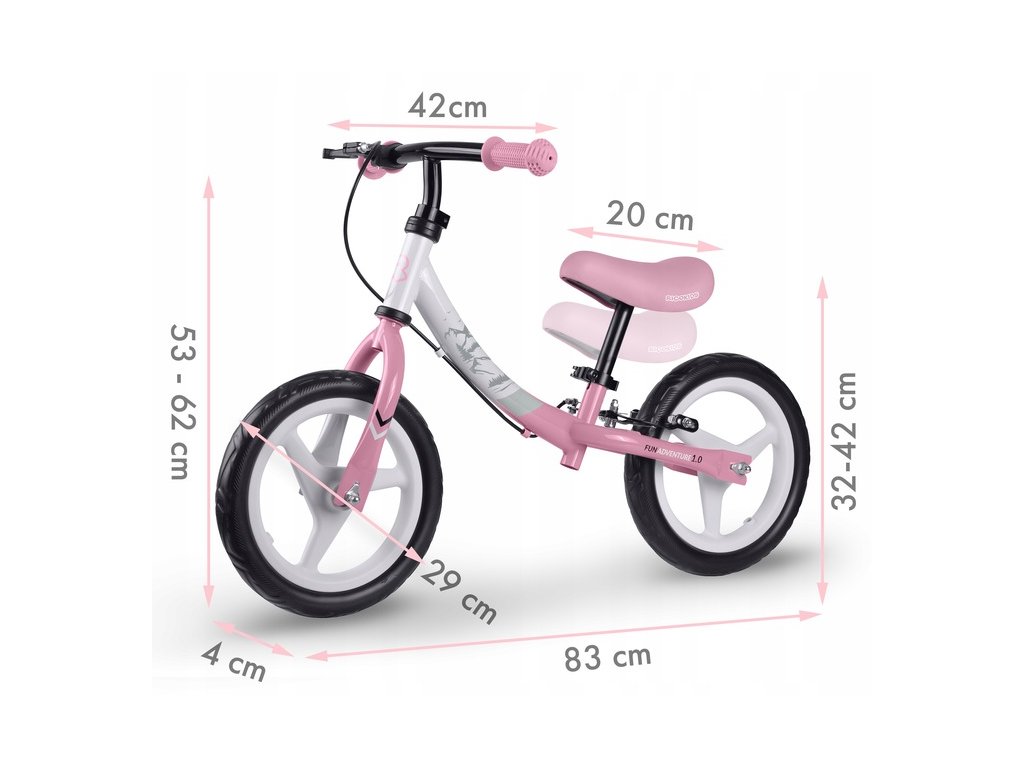 - Nastavitelná výška sedla (32–42 cm) – roste spolu s dítětem.