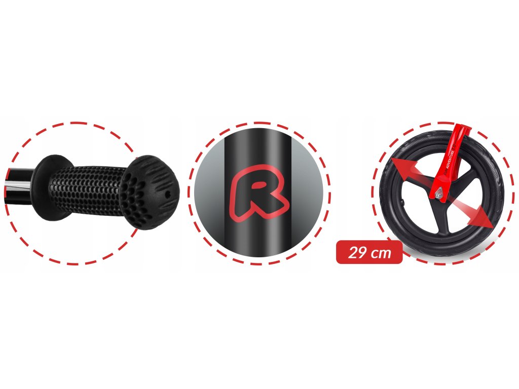 - Bezdušová kola EVA (29 cm) – lehká, tichá a odolná proti vlhkosti, UV záření i nízkým teplotám.