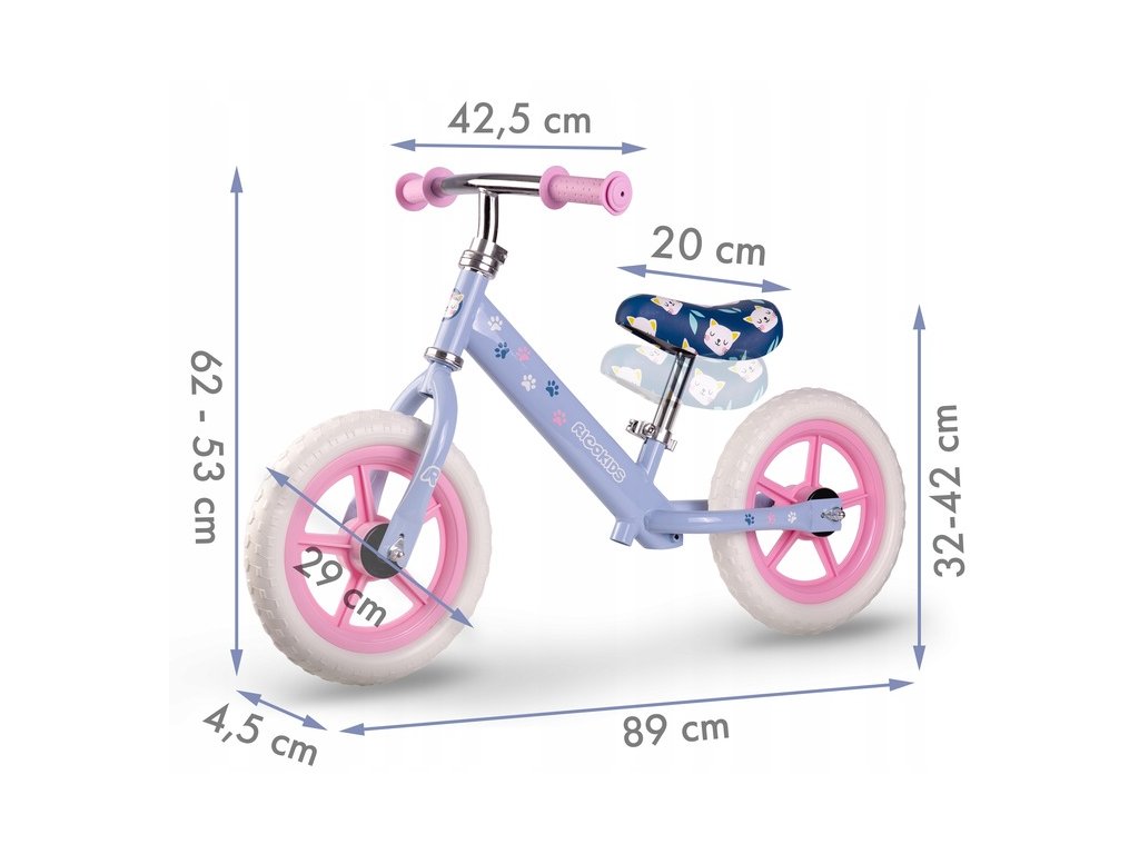 - Nastavitelná výška sedla (32–42 cm) – roste spolu s dítětem.