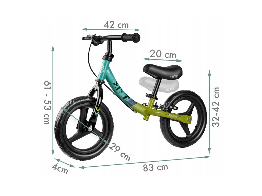 - Nastavitelná výška sedla (32–42 cm) – roste spolu s dítětem.
