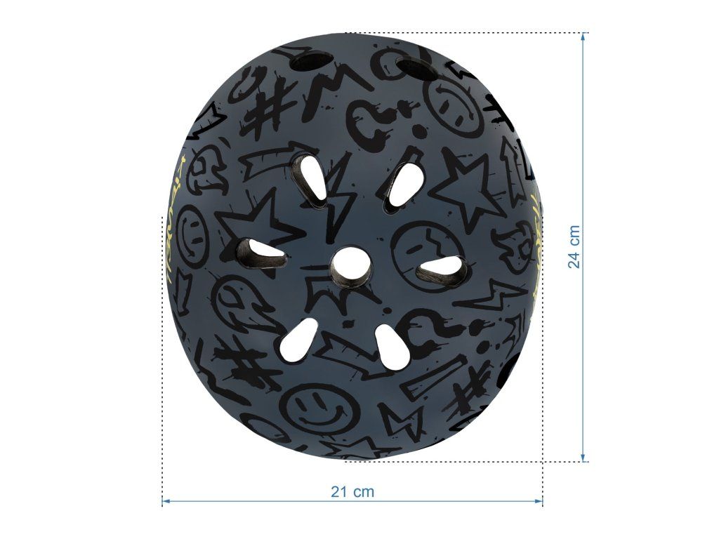 Helma je vybavena praktickým systémem regulace pomocí otočného kolečka, který umožňuje snadné přizpůsobení obvodu hlavy v rozmezí 52–56 cm. Díky tomu helma dobře sedí a roste spolu s dítětem.