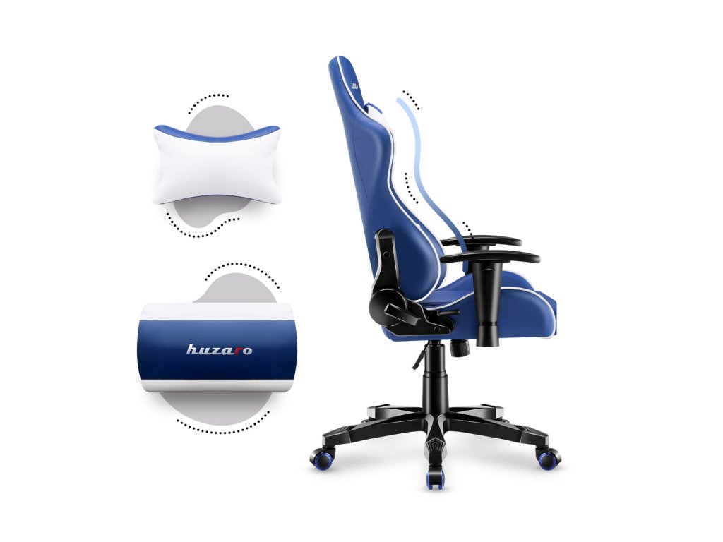 Křeslo je vybaveno nastavitelným bederním polštářem a polštářem pod krk, které pomáhají udržet správnou polohu páteře.