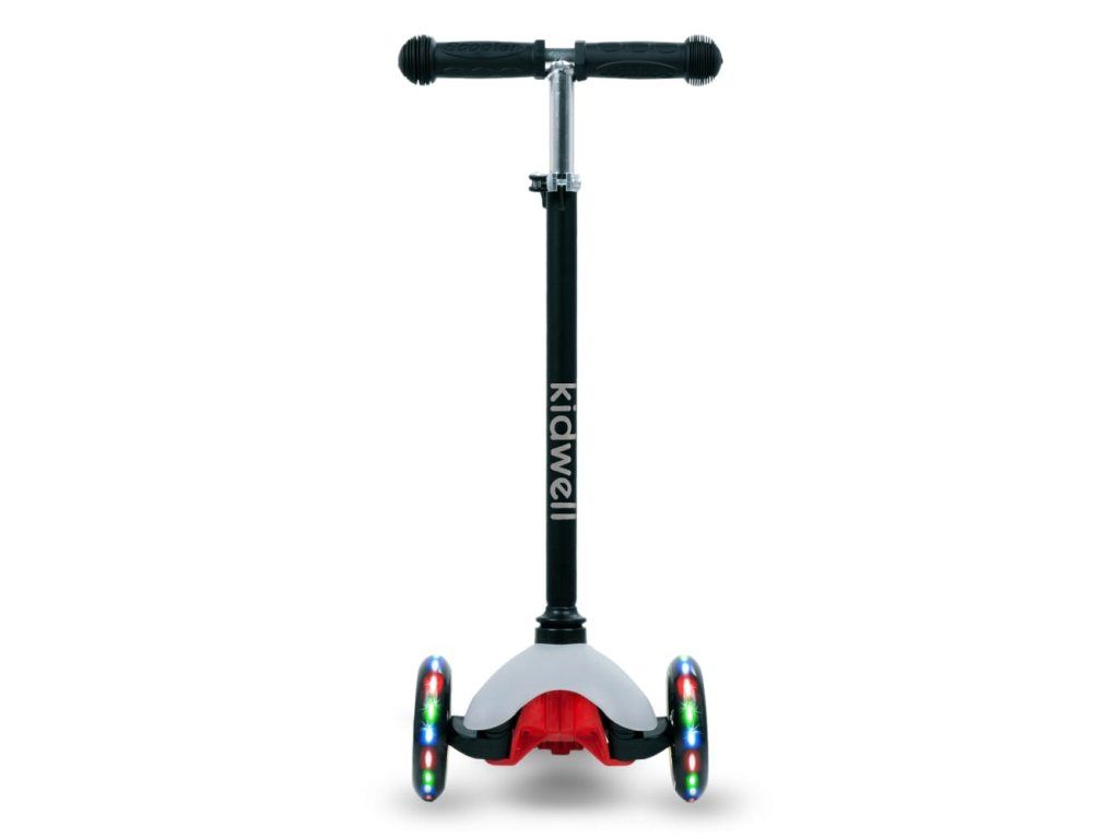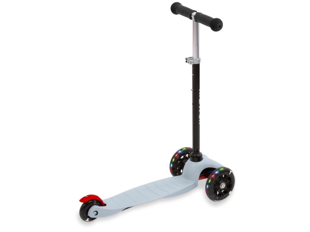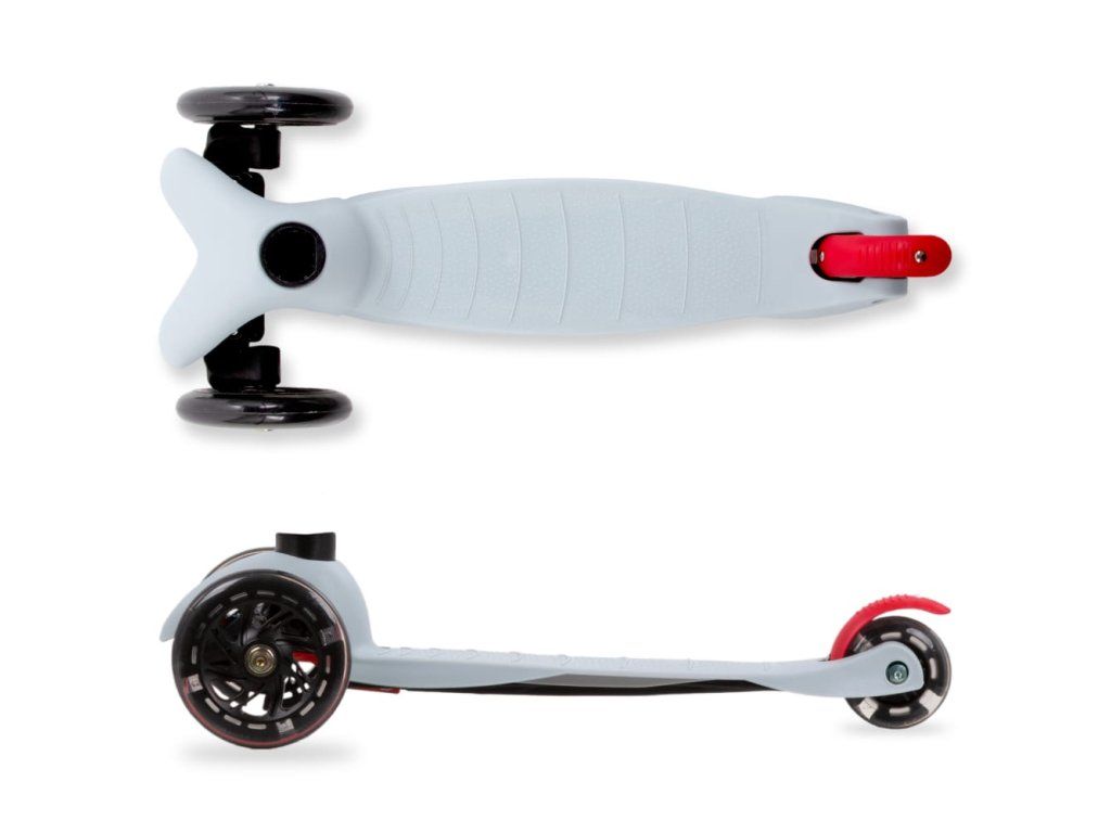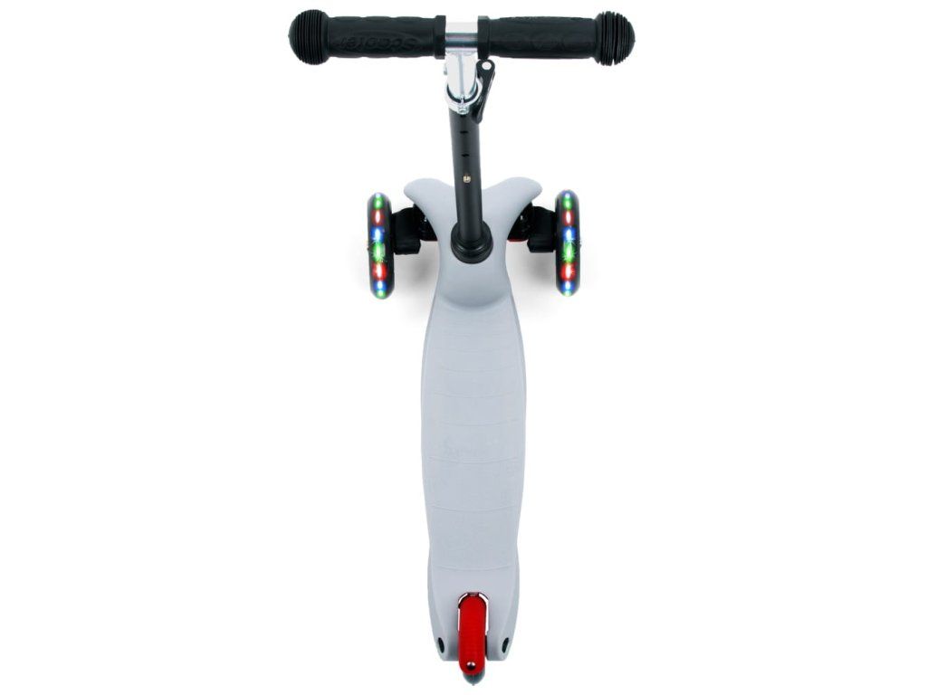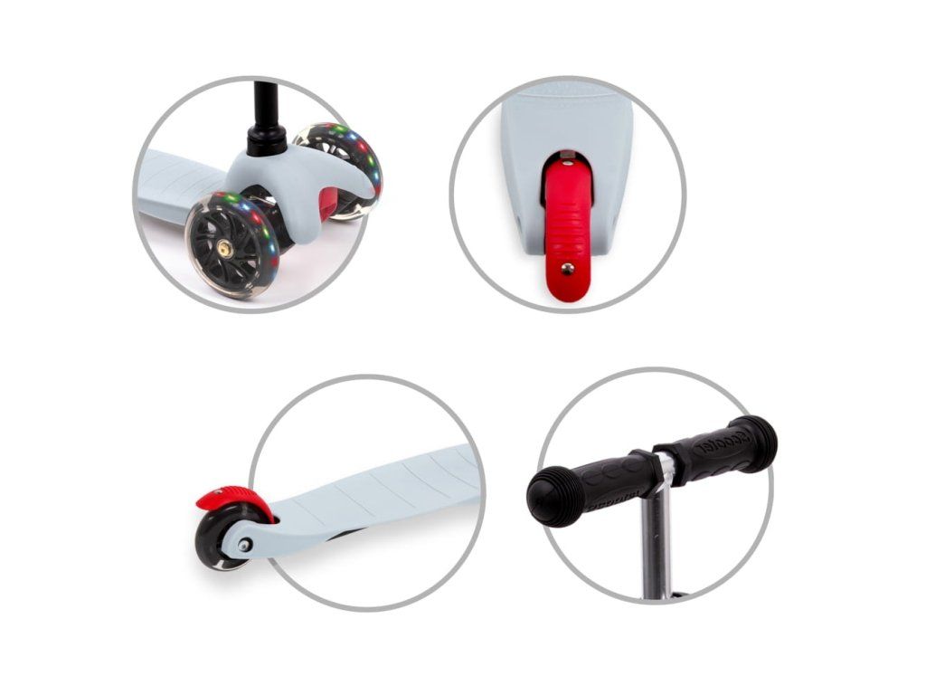 Kvalitní polyuretanová kola zajišťují tichou a plynulou jízdu s výbornou přilnavostí. Integrované LED diody se rozsvítí během jízdy bez potřeby baterií a zvyšují viditelnost i atraktivitu koloběžky.