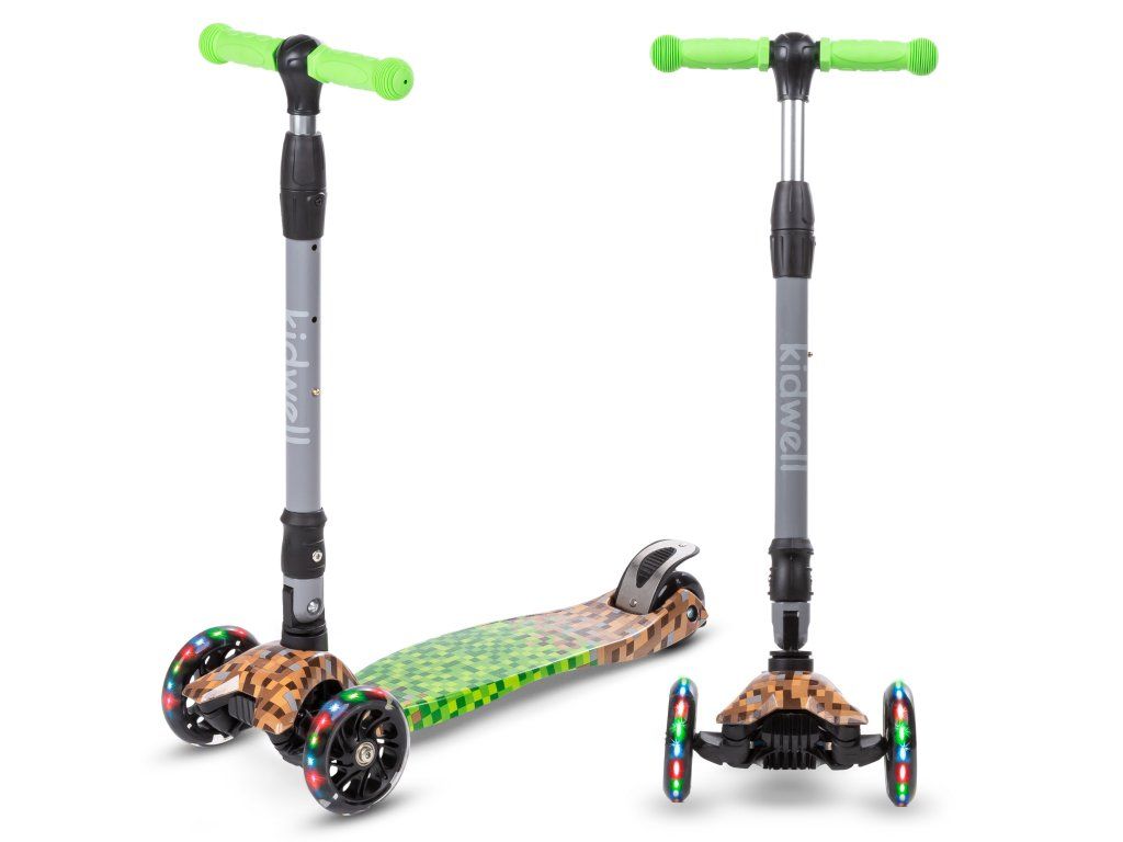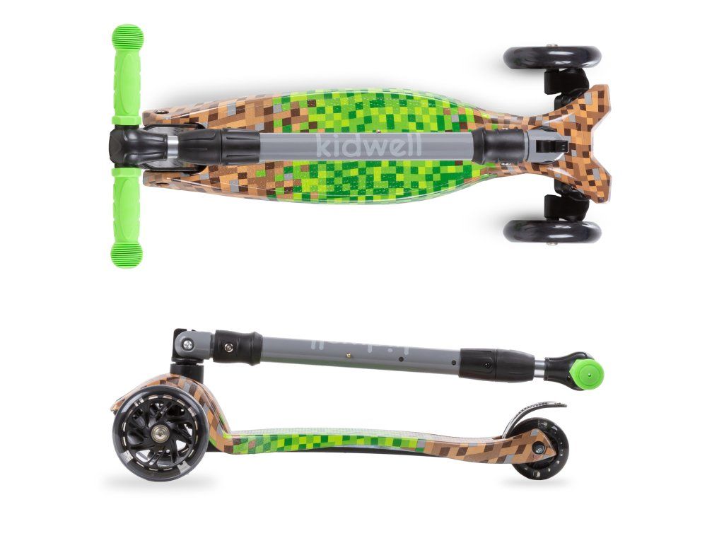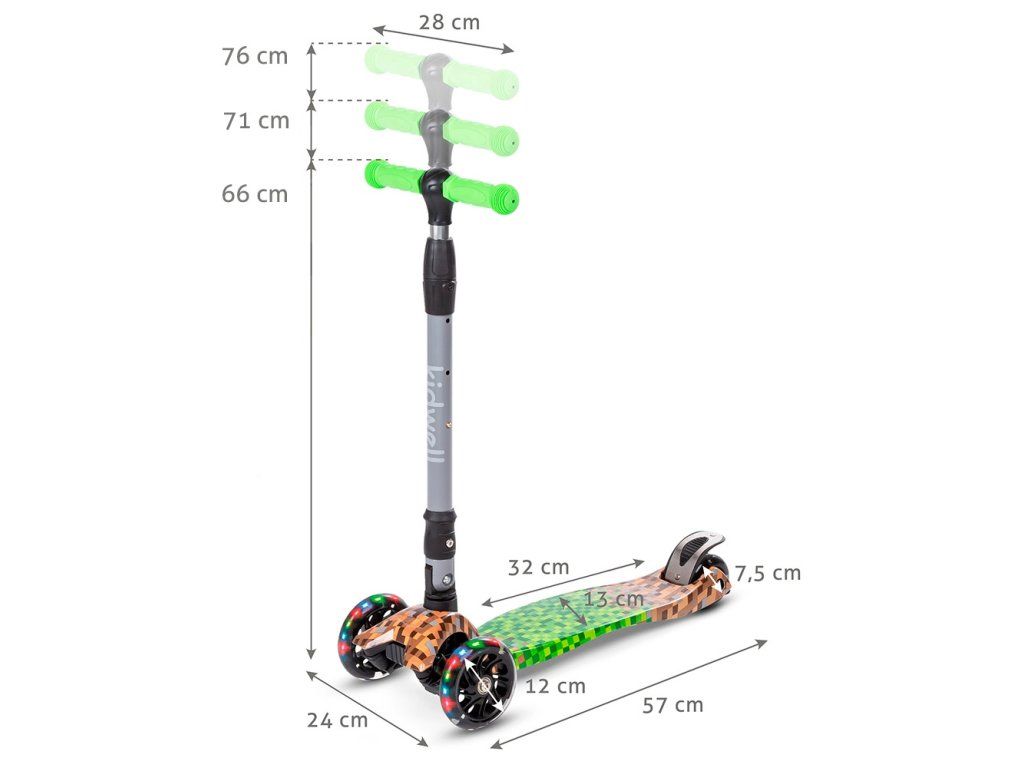 - Materiál: hliníková řídítka, plastová nášlapná deska, polyuretanová kola s LED