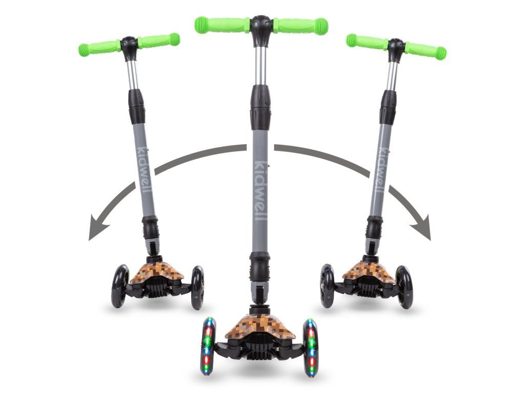 Koloběžka se ovládá přenášením váhy, což přirozeně rozvíjí koordinaci a rovnováhu dítěte. Omezený rozsah otáčení řídítek navíc minimalizuje riziko nechtěné změny směru.