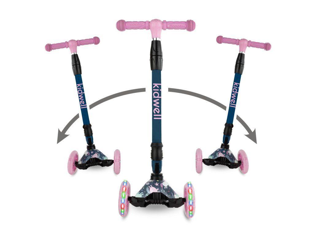 Koloběžka se ovládá přenášením váhy, což přirozeně rozvíjí koordinaci a rovnováhu dítěte. Omezený rozsah otáčení řídítek navíc minimalizuje riziko nechtěné změny směru.