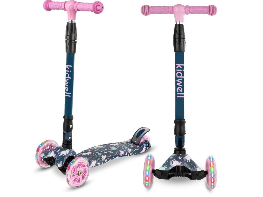 - Materiál: hliníková řídítka, plastová nášlapná deska, polyuretanová kola s LED