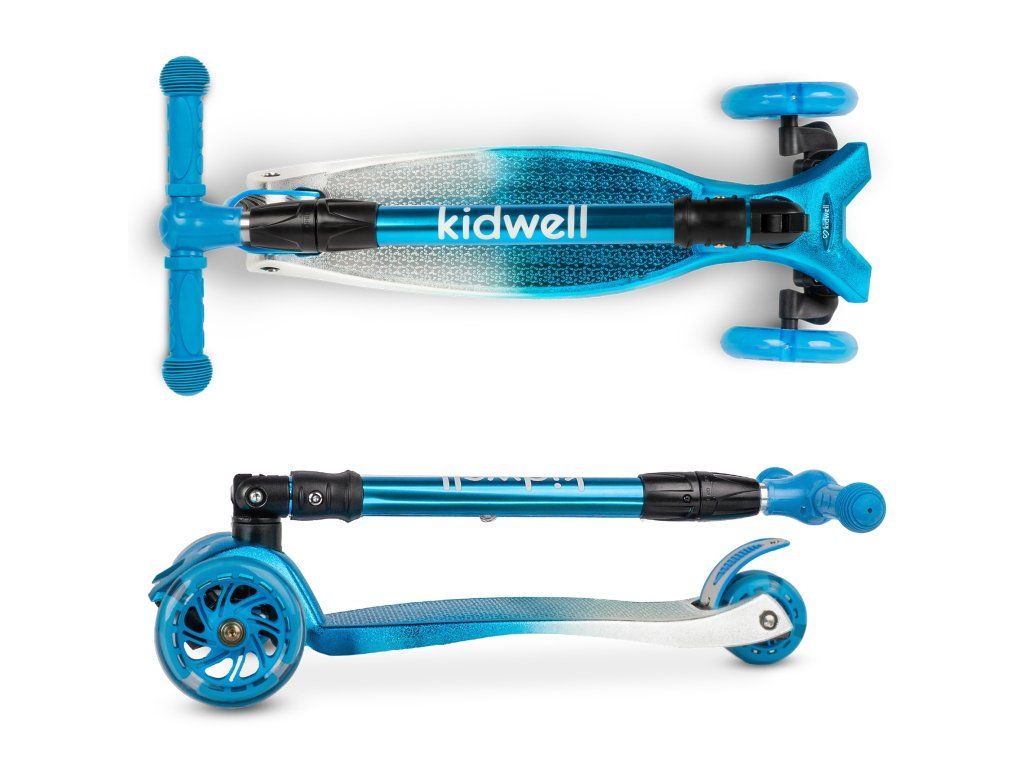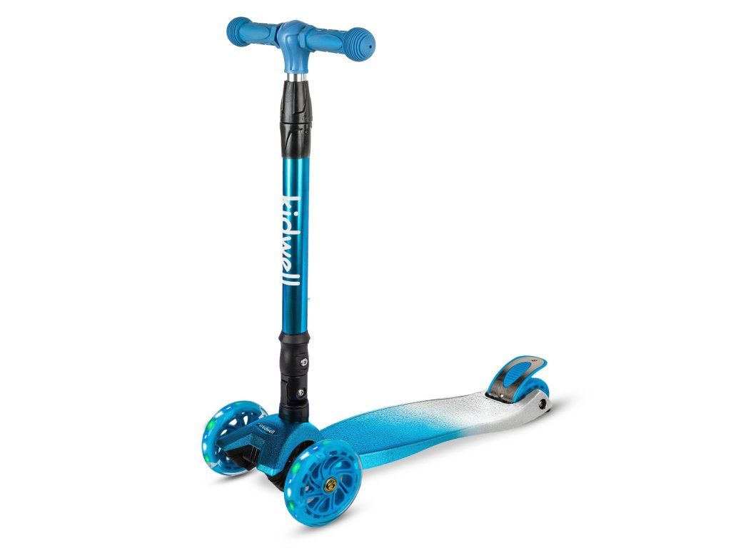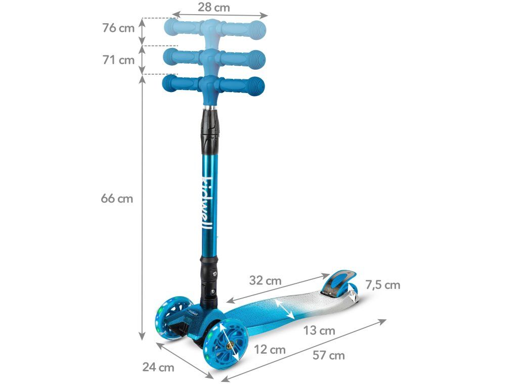 - Materiál: hliníková řídítka, plastová nášlapná deska, polyuretanová kola s LED