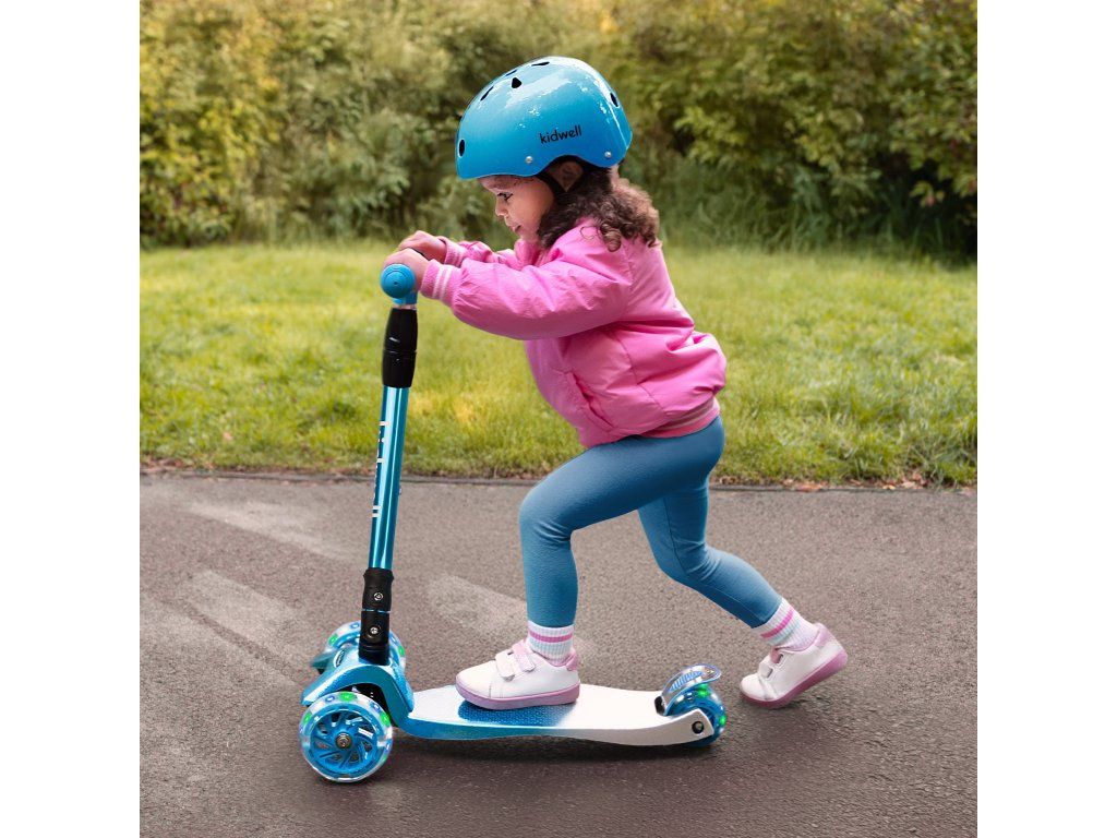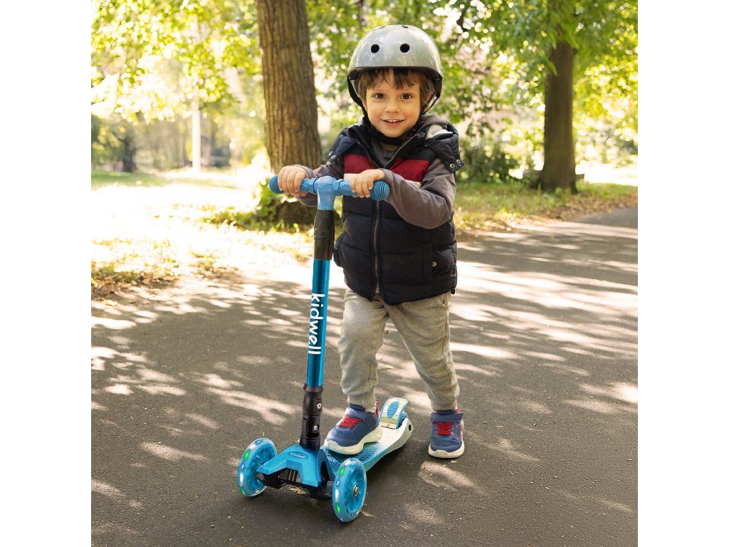 Koloběžka váží pouhých 2,7 kg, což zajišťuje snadnou manipulaci a pohodlné používání. Široký rozchod předních kol pomáhá udržet stabilitu a usnadňuje dětem první jízdy.