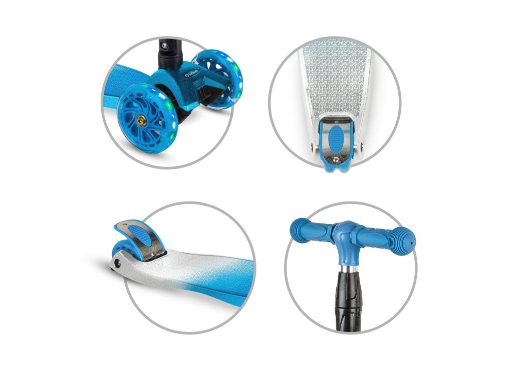 Kvalitní polyuretanová kola zajišťují tichou, plynulou jízdu a výbornou přilnavost k povrchu. Integrované LED diody se aktivují během jízdy bez potřeby baterií a zvyšují nejen atraktivitu, ale i viditelnost dítěte.
