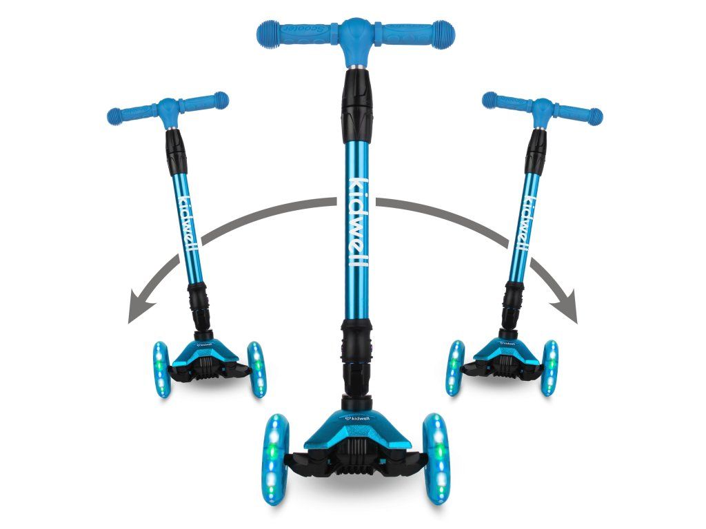 Koloběžka se ovládá přenášením váhy, což přirozeně rozvíjí koordinaci a rovnováhu dítěte. Omezený rozsah otáčení řídítek navíc minimalizuje riziko nechtěné změny směru.