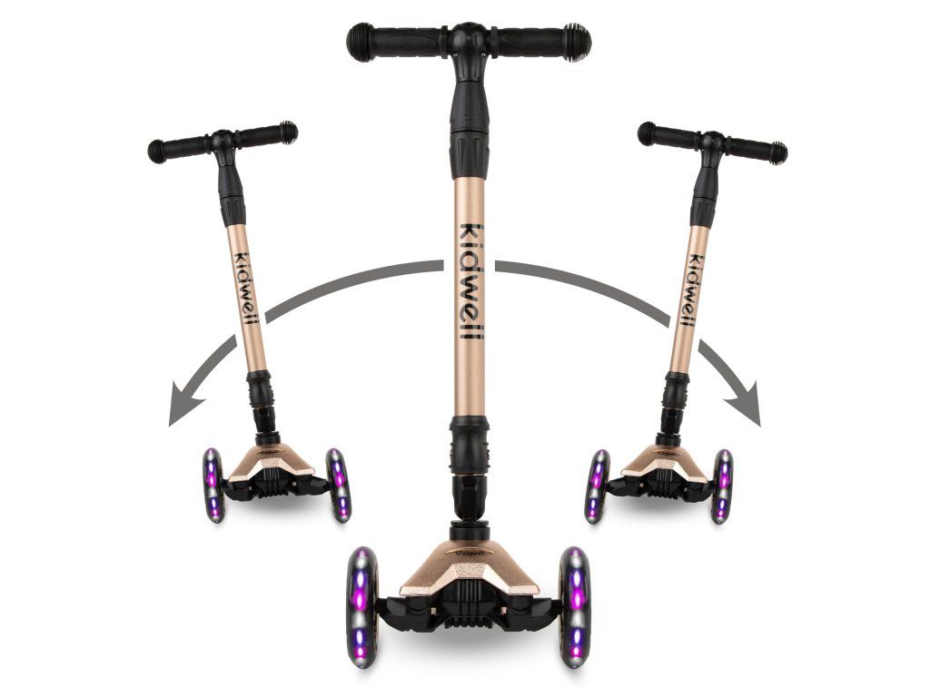 Koloběžka se ovládá přenášením váhy, což přirozeně rozvíjí koordinaci a rovnováhu dítěte. Omezený rozsah otáčení řídítek navíc minimalizuje riziko nechtěné změny směru.