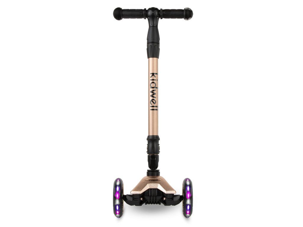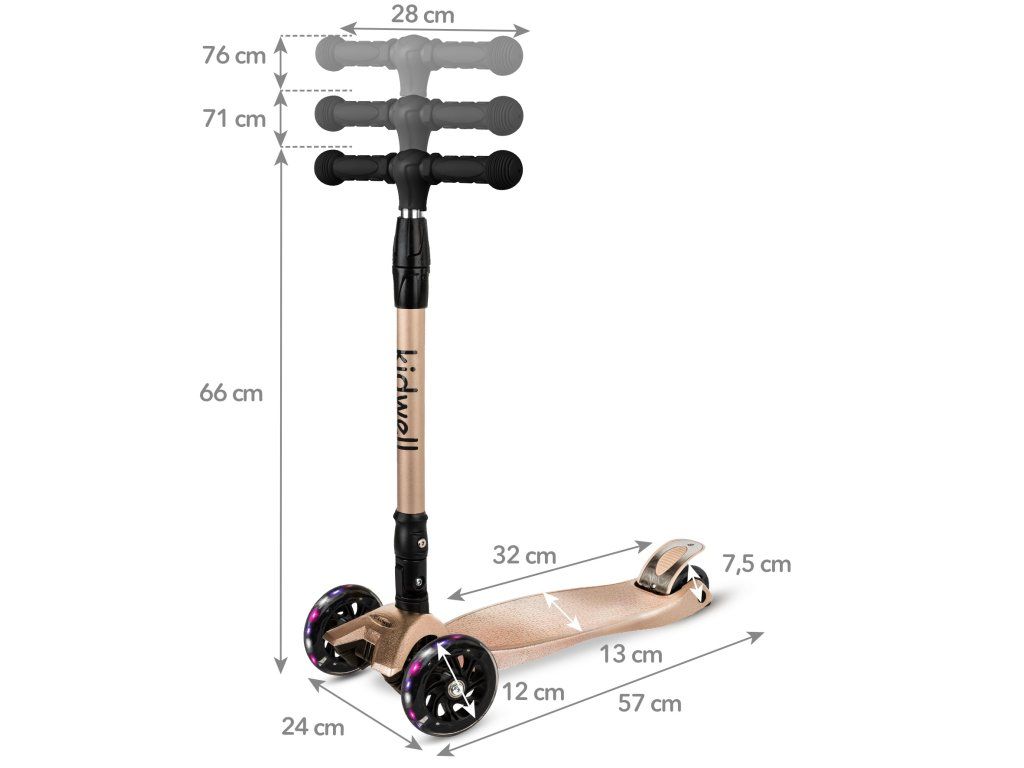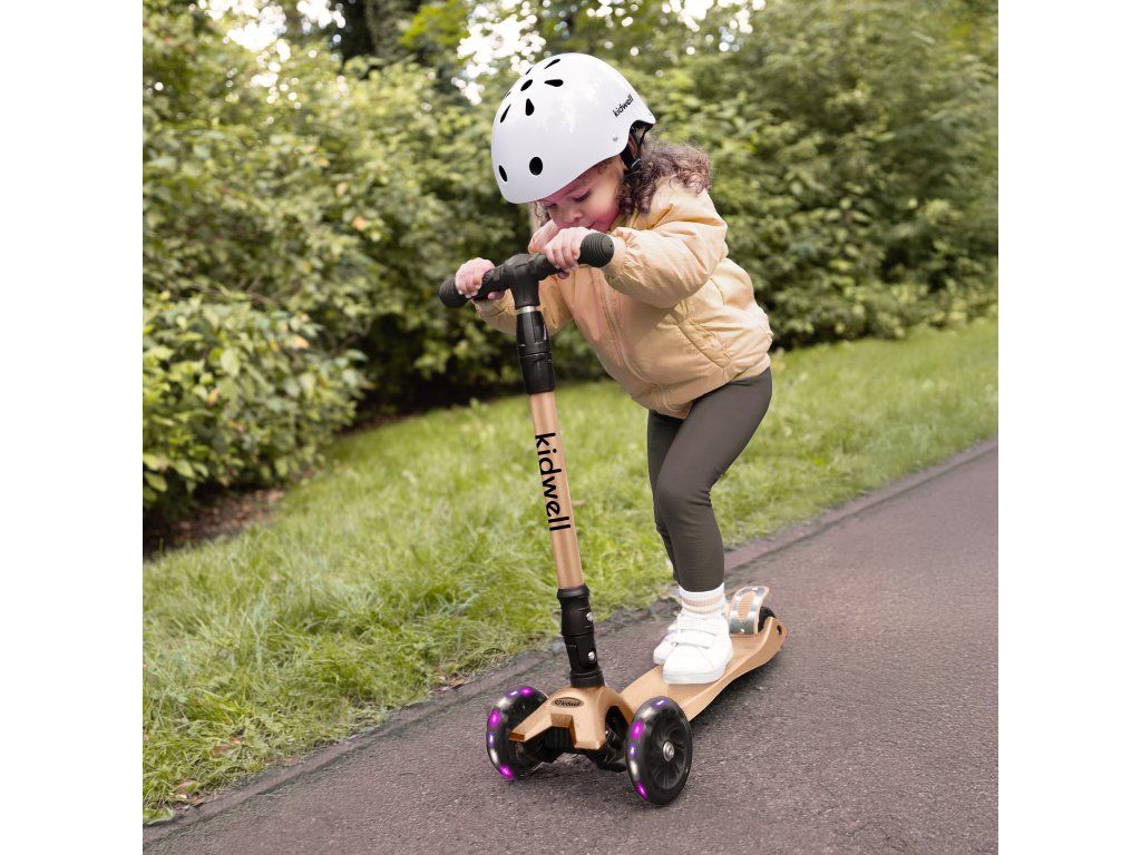 Koloběžka váží pouhých 2,7 kg, což zajišťuje snadnou manipulaci a pohodlné používání. Široký rozchod předních kol pomáhá udržet stabilitu a usnadňuje dětem první jízdy.