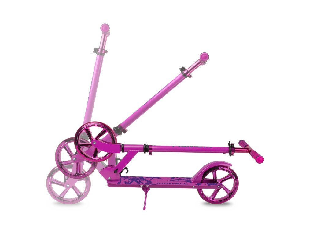 Skládací rukojeti usnadňují skladování a stabilní stojánek umožňuje pohodlné zaparkování koloběžky kdekoliv potřebujete.