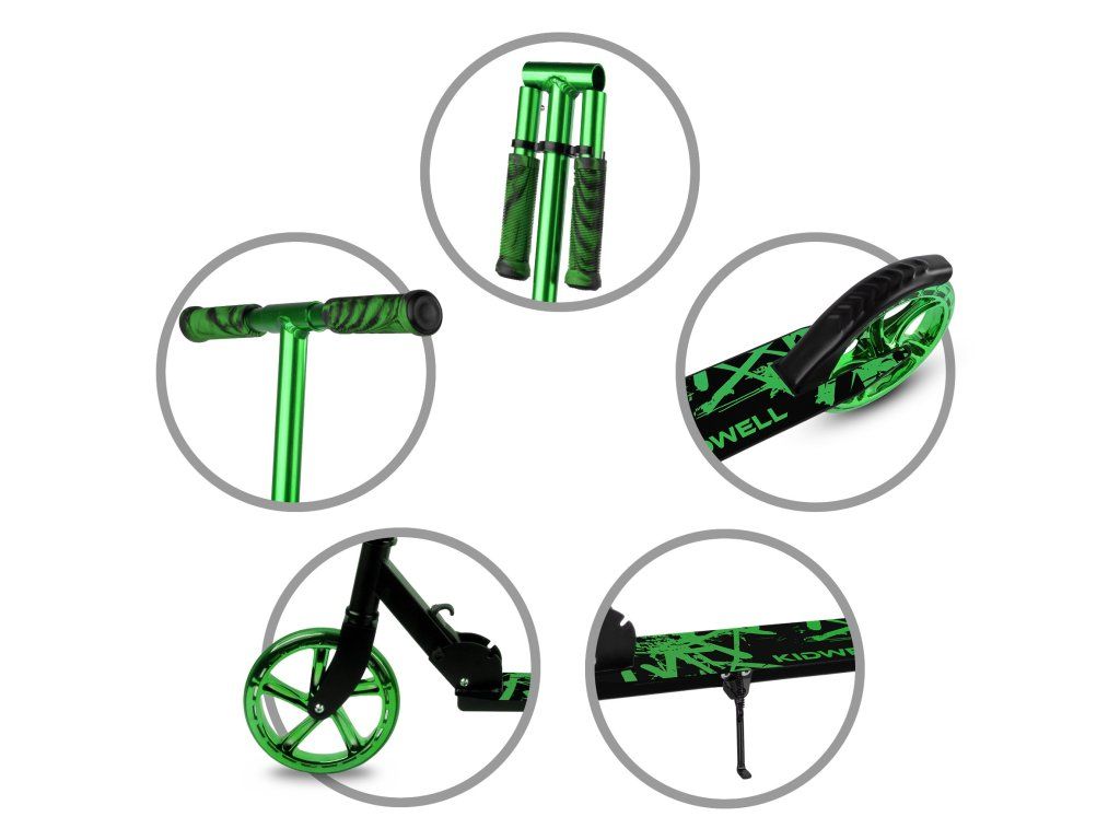 Skládací rukojeti usnadňují skladování a stabilní stojánek umožňuje pohodlné zaparkování koloběžky kdekoliv potřebujete.