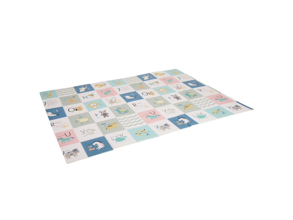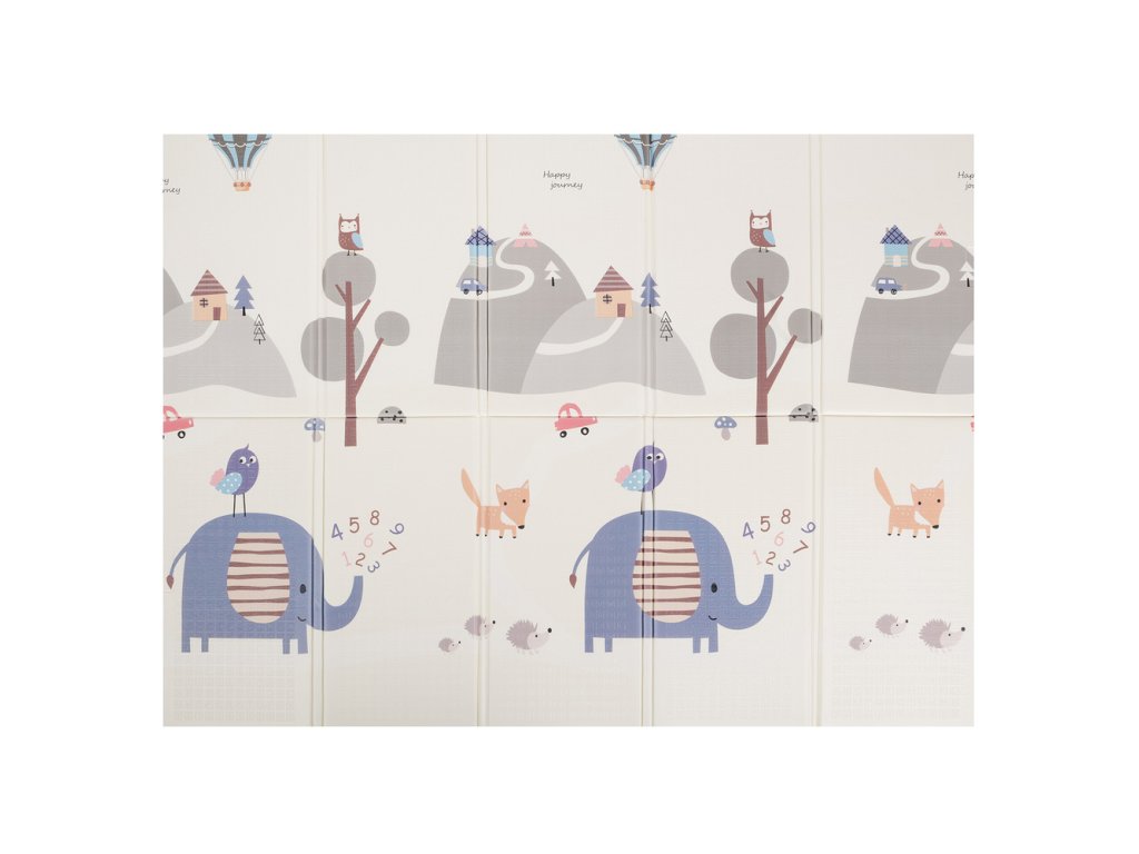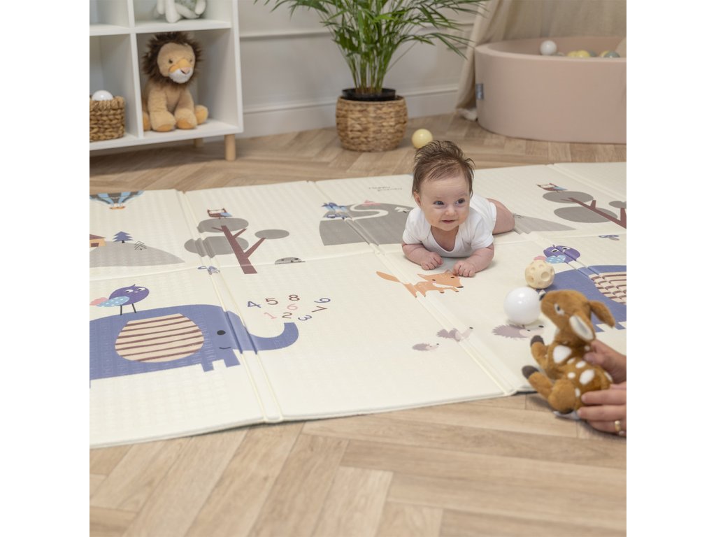 - Bezpečí a pohodlí – podložka má protiskluzovou strukturu, tloušťku 1 cm a vynikající tlumicí vlastnosti. Chrání dítě při pádu a izoluje od studené a tvrdé podlahy.