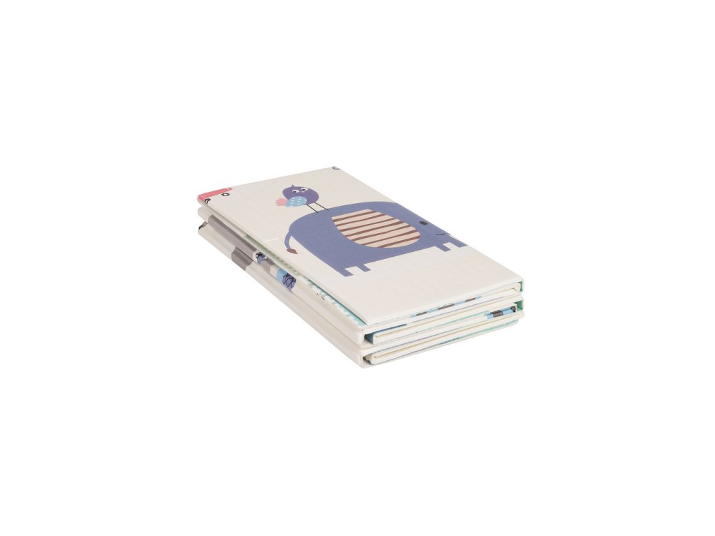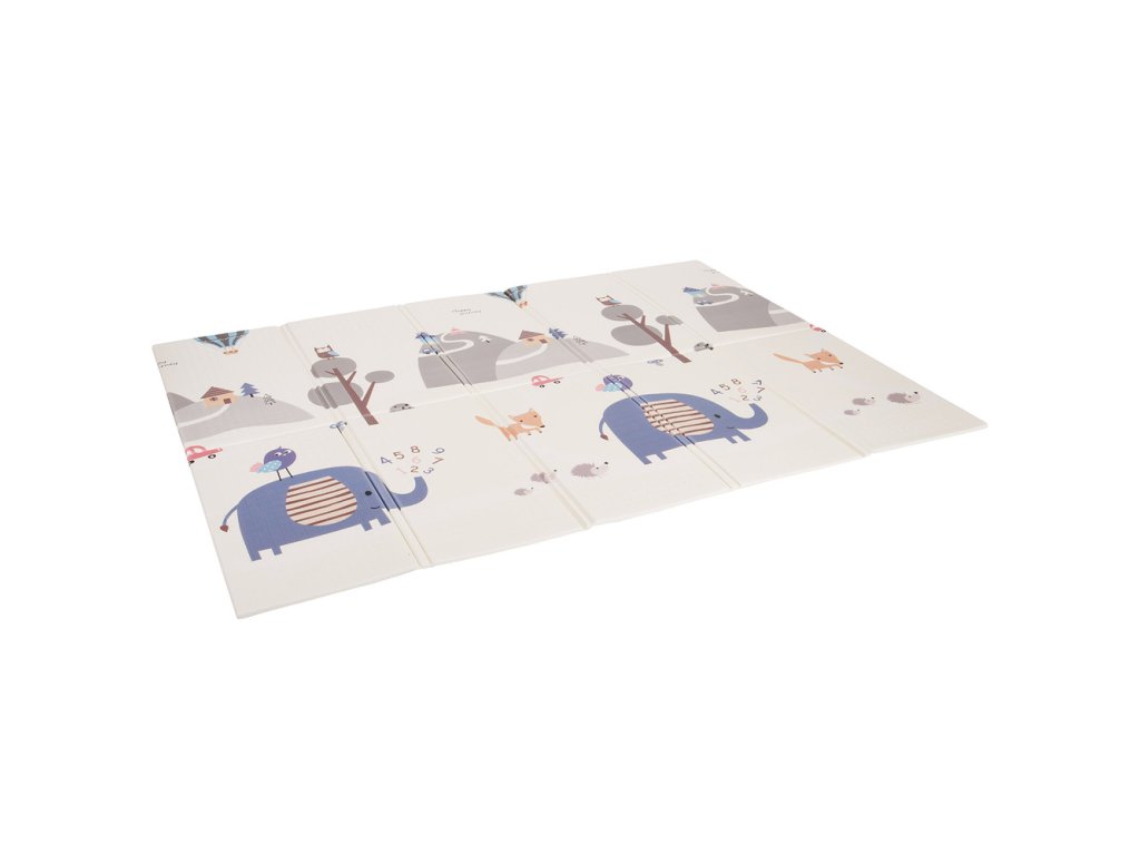 - Skládací a přenosná – podložka se skládá naplocho a je uložena v praktickém pouzdru s držadlem. Ideální do bytu, na zahradu, na cesty i venkovní hraní.