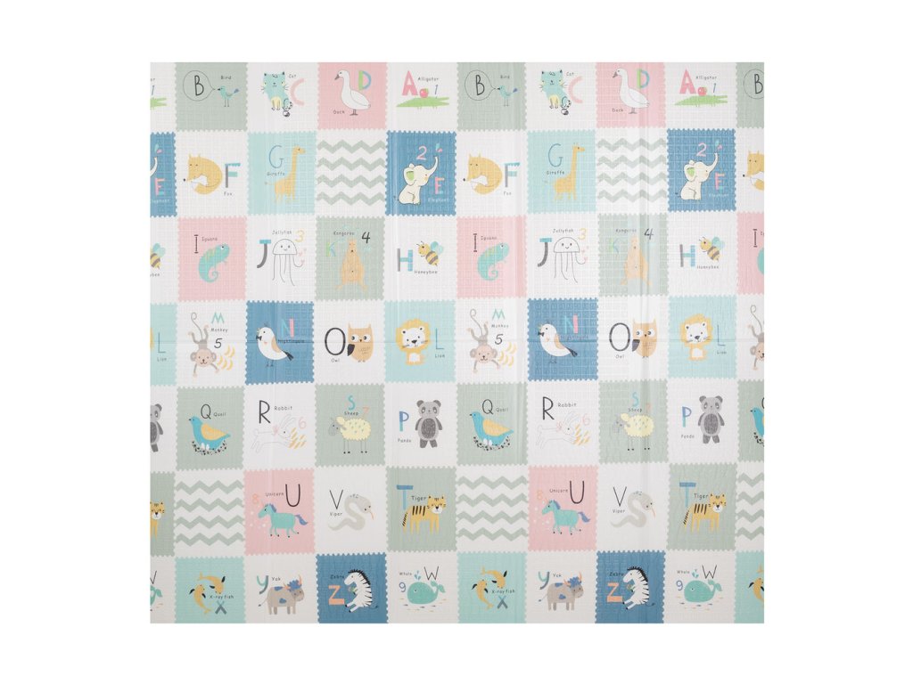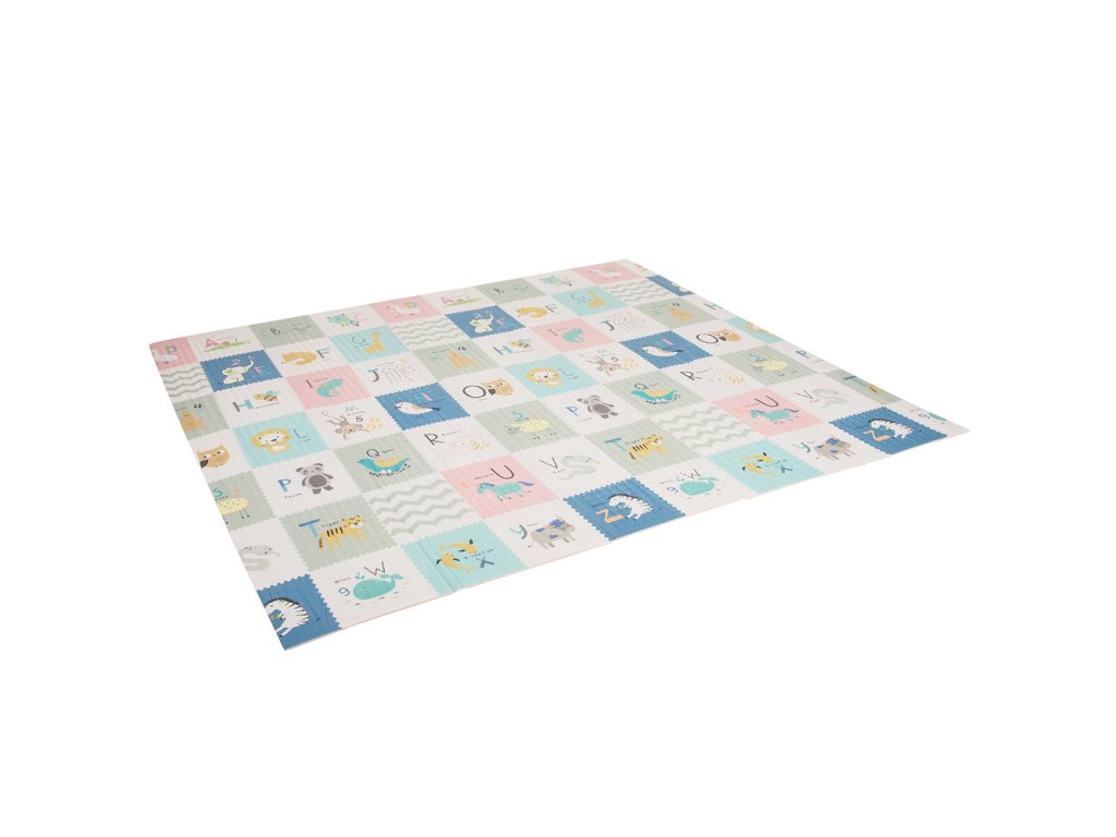 - Bezpečí a pohodlí – podložka má protiskluzovou strukturu, tloušťku 1 cm a vynikající tlumicí vlastnosti. Chrání dítě při pádu a izoluje od studené a tvrdé podlahy.