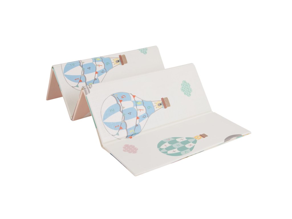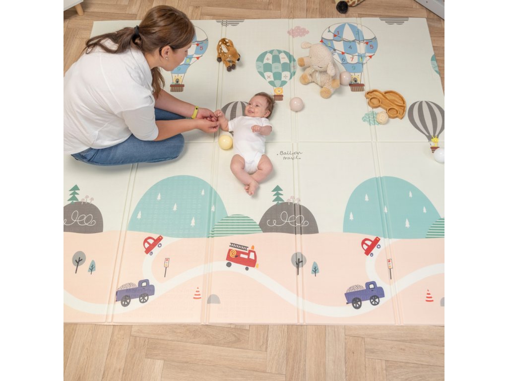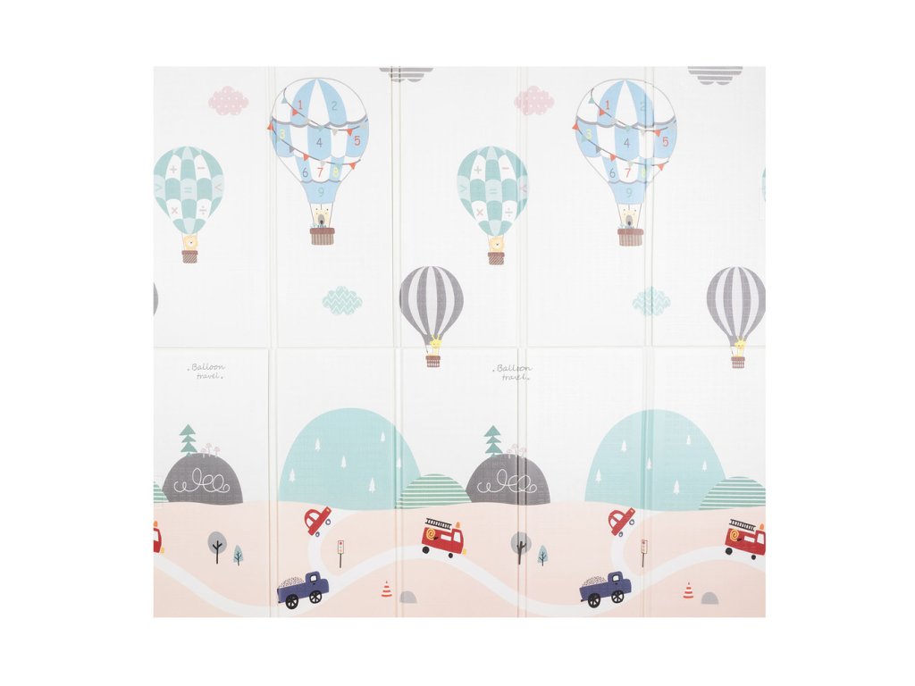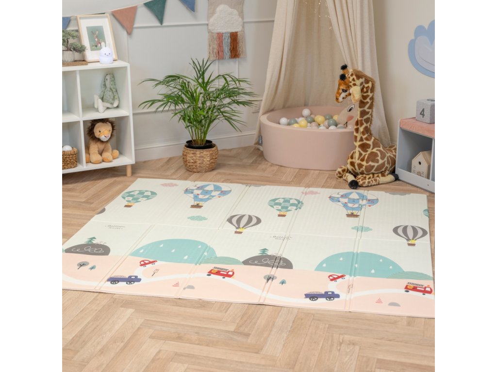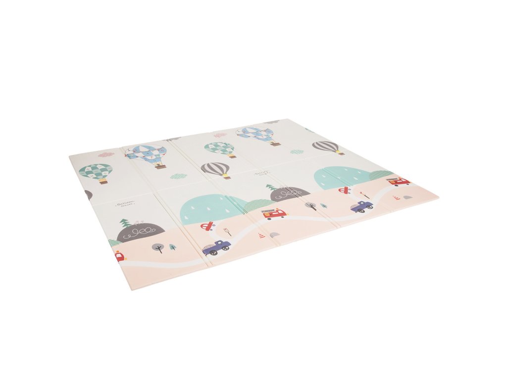 - Skládací a přenosná – podložka se skládá naplocho a je uložena v praktickém pouzdru s držadlem. Ideální do bytu, na zahradu, na cesty i venkovní hraní.