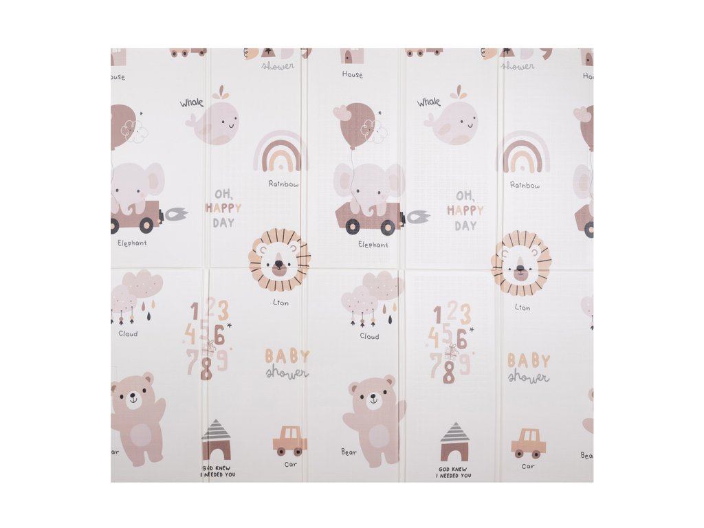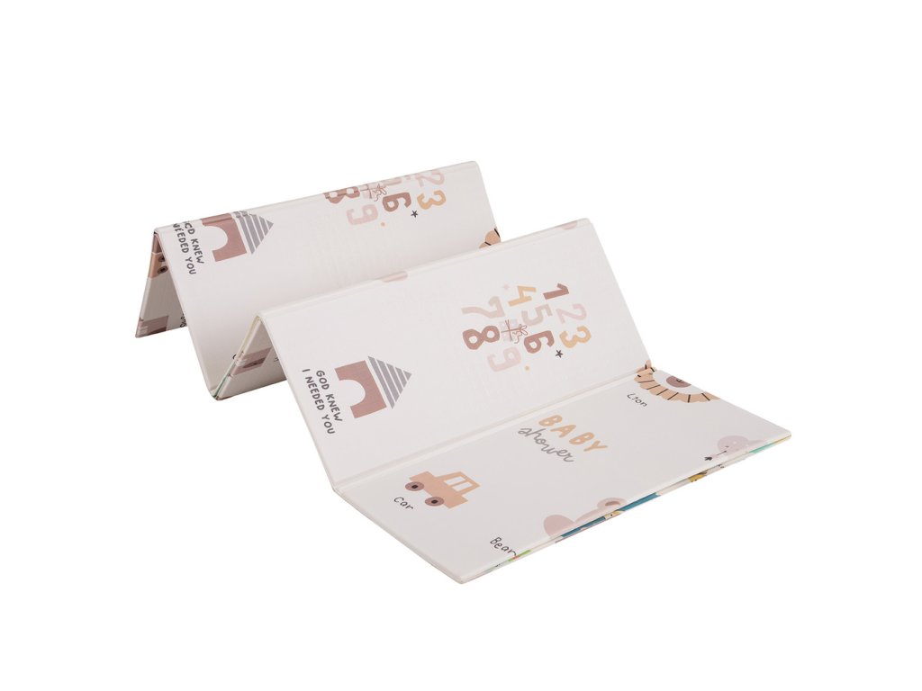 - Skládací a přenosná – podložka se skládá naplocho a je uložena v praktickém pouzdru s držadlem. Ideální do bytu, na zahradu, na cesty i venkovní hraní.