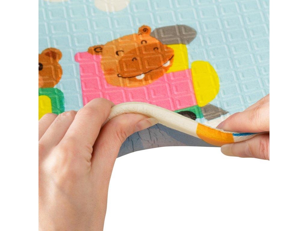 Podložka je vyrobena z velmi kvalitního XPE materiálu, je odolná vůči vlhkosti, má protiskluzovou úpravu, vytváří tepelnou izolaci. Proto je vhodná pro děti, které se učí přetáčet nebo se plazí. Měkká podložka může zmírnit následky drobných pádů, když dítě zkouší svoje první krůčky nebo trénuje sezení.