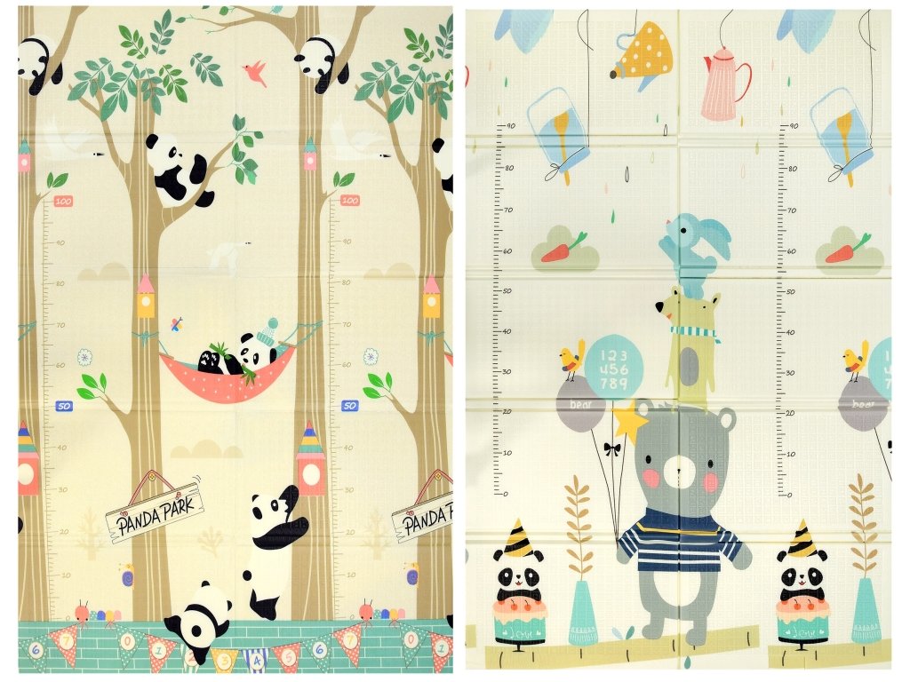 Pěnová skládací oboustranná podložka 120x180 cm panda+medvěd