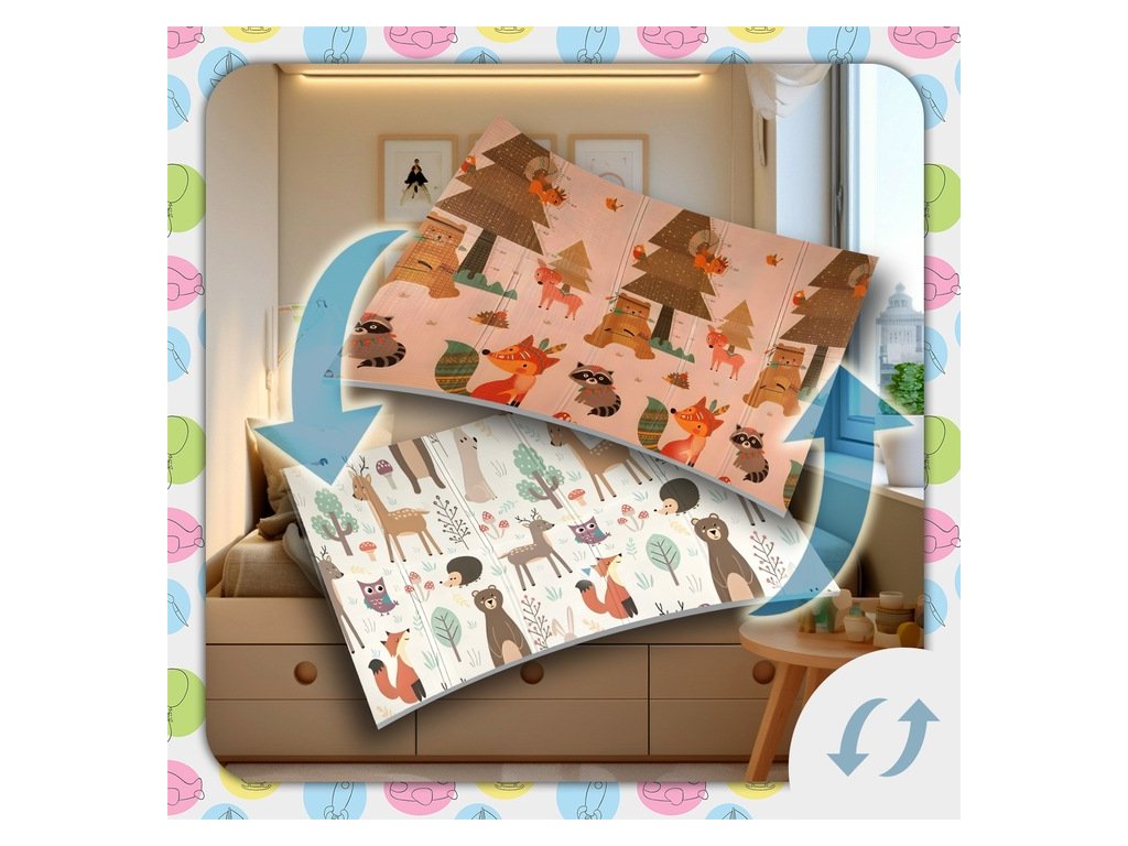 Skládací oboustranná pěnová podložka 200x150 cm zvířátka+les