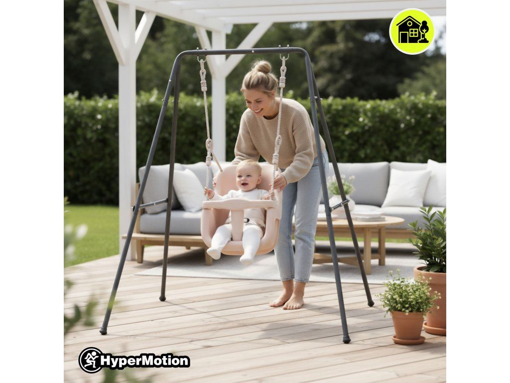 Houpačku lze využít doma, na terase i na zahradě. Díky kvalitním materiálům a odolnému provedení je připravena na každodenní používání v různých podmínkách.