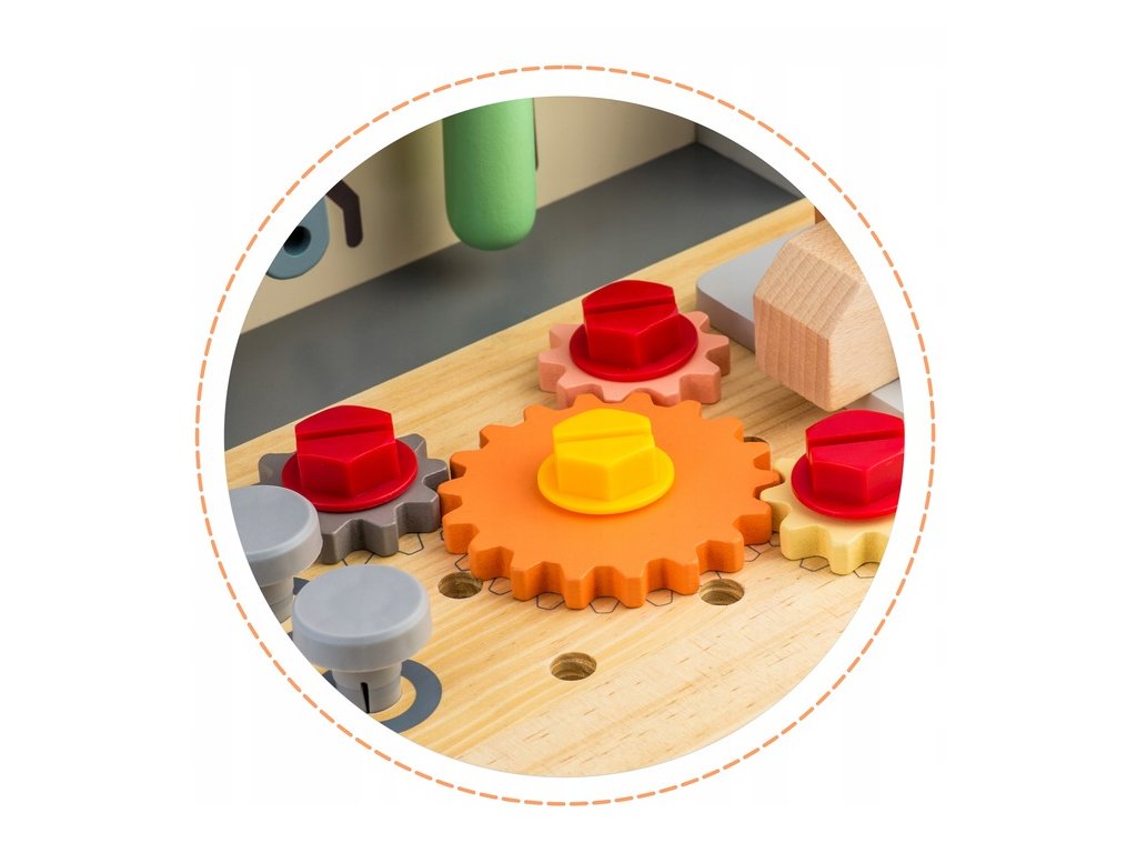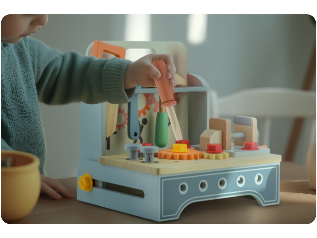 Tato dřevěná dílna s nářadím je perfektní hračka pro děti, které rády tvoří, opravují a napodobují dospělé. Spojuje učení, pohyb a kreativitu – a to vše v duchu metody Montessori.