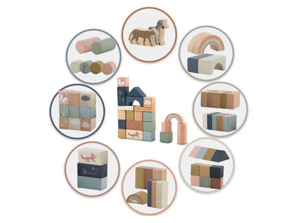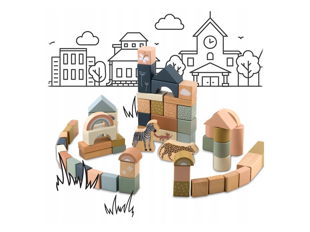 Dřevěné stavební kostky 70 ks jsou ideální kombinací vzdělávání, estetiky a radosti z objevování.