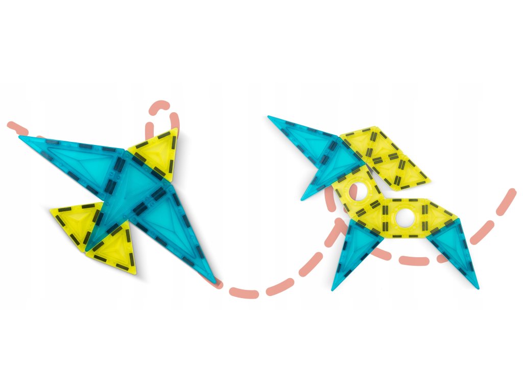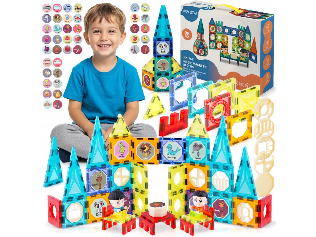 Barevné dílky se snadno spojují pomocí magnetů, takže stavění je intuitivní, bezpečné a plné radosti.