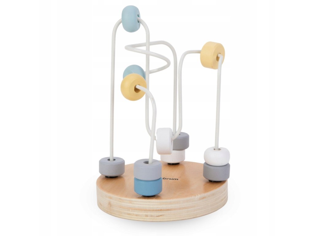 - Dřevěný labyrint s korálky – podporuje koordinaci oko–ruka, přesnost pohybů a soustředění.